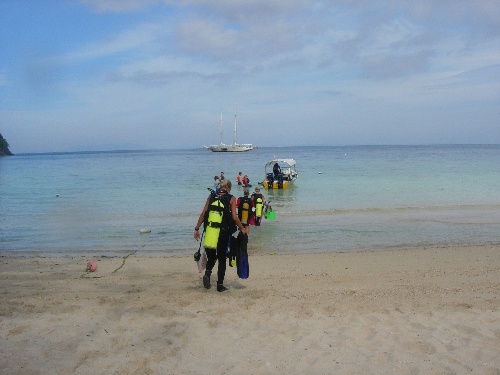 : After a calm night anchored off beautiful Pulau Tenggol, we woke up to some delicious crepes and started our adventurous diving day in the fascinating marine park of Tenggol. We dived down the wall to a diverse reef with rays, eels, turtles, and colorful fish of all sorts swimming all around us! It was such an amazing sight for all, especially our newly certified divers! Then, onto a very relaxing day on board with classes in the afternoon, a delicious pasta dinner, and some more amazing diving at night! We dived down a shallower wall to yet another nice reef. However, at night is when all the ‘big guys’ come out and play: giant moray eels, giant parrotfish, and giant crabs just lurking all around! It was quite a delightful surprise. Needless to say, today rocked! Full of excitement and adventure, with smiles all around!