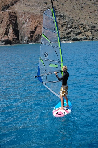 Ile Fourche is a small rocky island located approximately three nautical miles from St. Barth, and it is one of my personal favorites. In stark contrast to the lush tropical islands of Nevis, St. Lucia, and Dominica, Ile Fourche is extremely dry and completely uninhabited. The bay, which, when viewed from above, resembles a submerged moon crater, is filled with beautiful aqua water and lined with pure white sand. The surrounding hills perfectly fend off the strong open ocean winds while simultaneously allowing the cool tropical breezes to refresh the deck. In addition to its natural beauty, Ile Fourche provides an abundance of activities, everything from diving to hiking. Today began with a wonderful open water dive, during which we saw upwards of 29 barracudas, two sea turtles, and a pair of large spotted eagle rays. Some of the group even heard humpback whales underwater! After the dive, the crew continued their rescue diver certification, and we spent the open afternoon windsurfing, swimming, and hiking the surrounding peaks. Since we sail for Statia tomorrow, we also prepared the boat for our passage, and it became obvious that we, the crew, had become slightly salty. Each shipmate attended quietly and diligently to their tasks as we attached lazy jacks, lashed down scuba tanks, and completed all the necessary preparations. Ile Fourche is one of the most untouched parts of the Caribbean we’ve seen, and I doubt I’ll ever have the opportunity to swim to a deserted beach towing a dry bag filled with hiking shoes and a sun shirt only to hike to the top of an island, ever again.