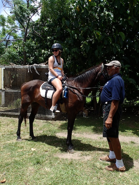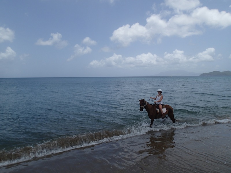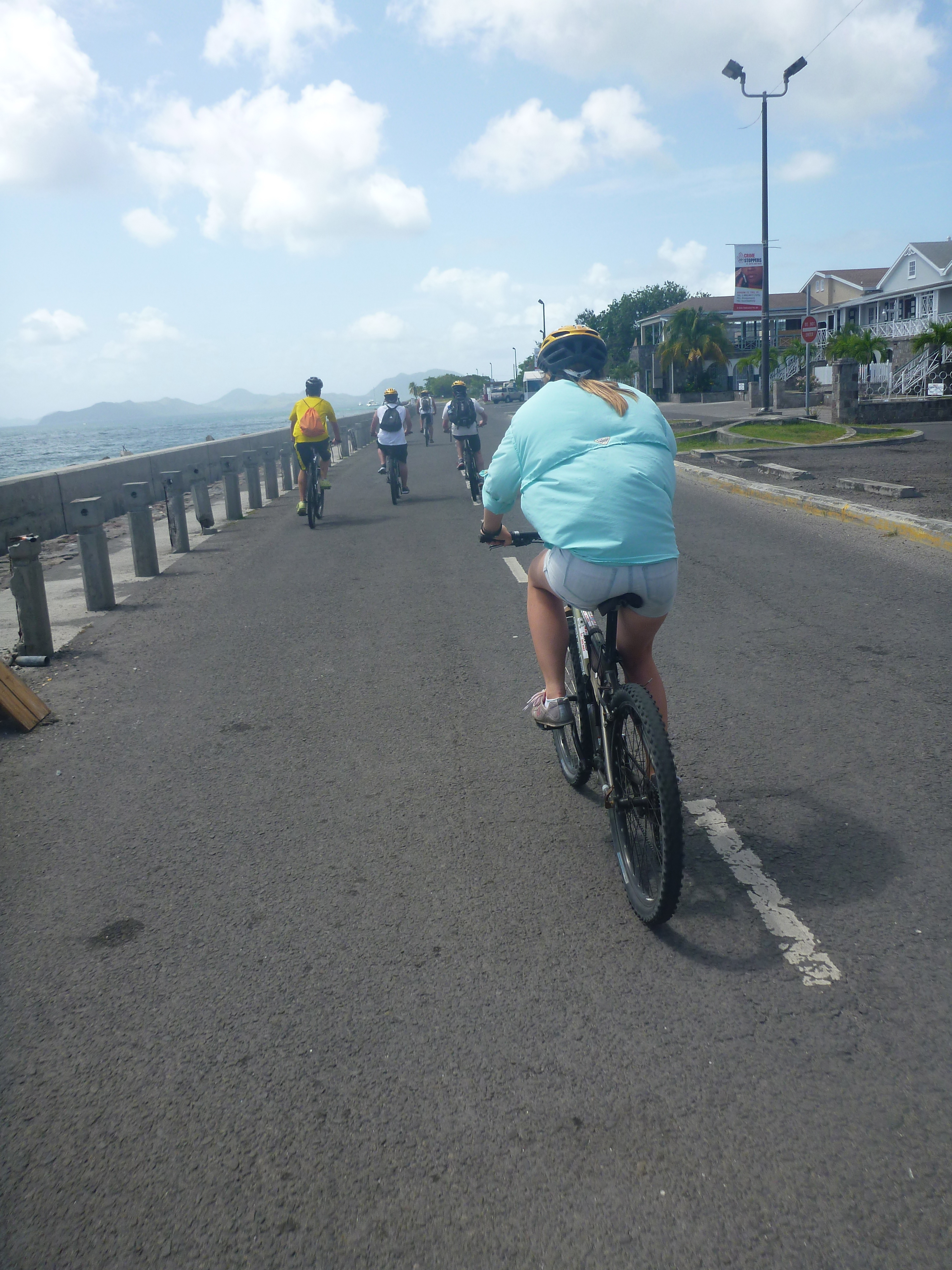 Today was our first day in Nevis. After our standard breakfast of yogurt and cereal, we went ashore for either cycling or horseback riding on the beach, but first, we had to get a taxi ride to our destination. Our driver was a Watuski cab driver and a local singer/songwriter. He drove us past Alexander Hamilton’s birthplace and told us a lot about Nevis’s history. After the day’s excursion, we rode back with Watuski, and some of us purchased CDs from Watuski. Most of the group, myself included, went cycling, and Nevis is far from flat. The first half of the island was a struggle, with lots of uphill and short stops for food and water, but once we made it to the top of Pond Hill, it was all downhill to the pier. It was so incredibly steep that we couldn’t pedal, and we were going the same speed as the cars. Now we are back on the ocean star, taking showers and getting ready for dinner at the Sunshine Bar and Grill. Overall, I could not think of a better way to spend my summer.