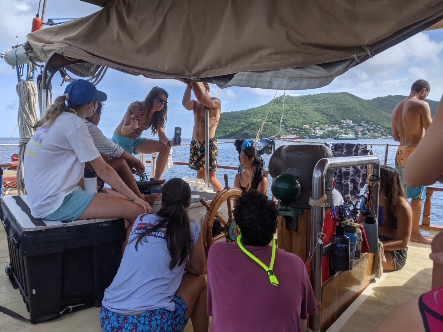 After this, the group moved on to have a lecture for Oceanography, and then everyone got ready to head over to the reef site known as Devil’s Table for some snorkeling. This allowed the research groups to collect data for their projects using some of the techniques learned just this morning.