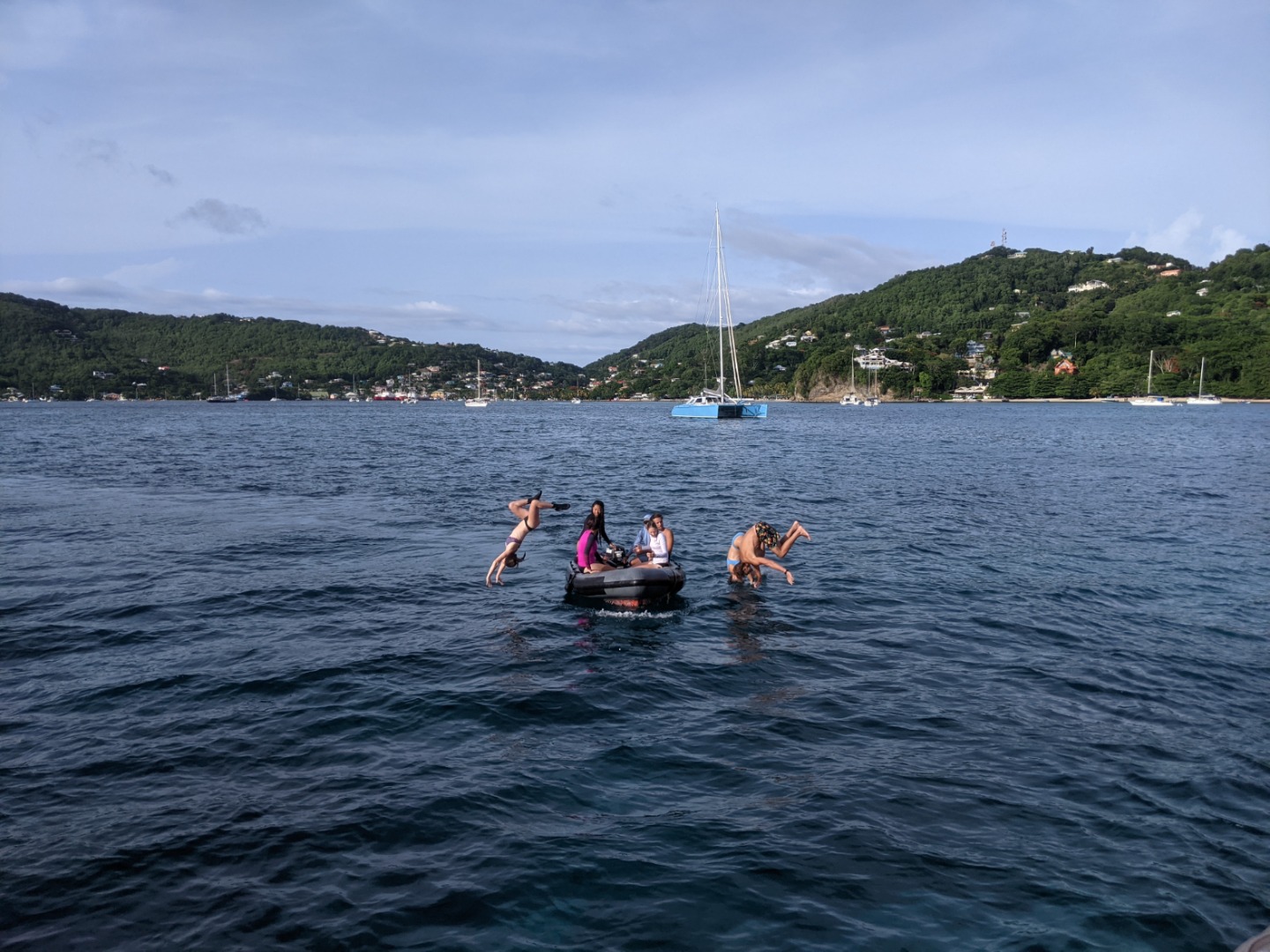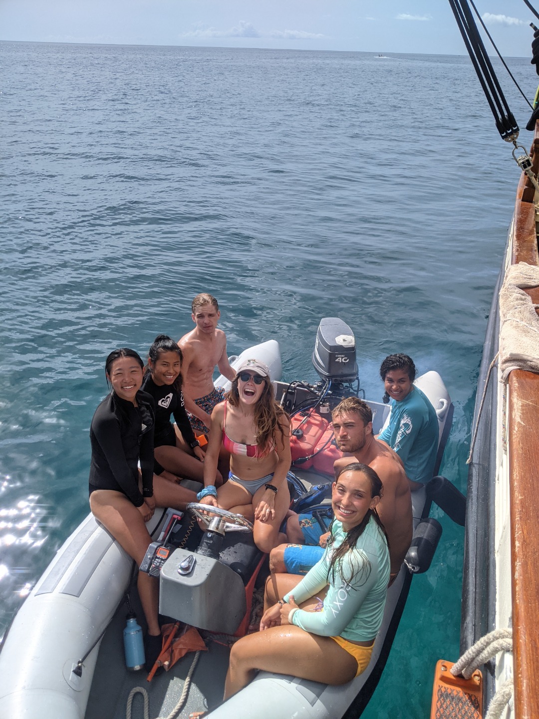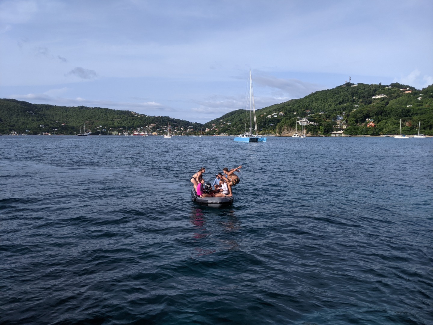 Upon arrival back at OceanStar, one group showed off their backflipping skillz from the dinghy. Pictured is Teagan, Cleo, and Jaden. Then it was time for jump-in showers whilst the Galley Crew finished preparing an epic dinner of homemade fries and burgers! For our squeeze question at the end of the meal, I asked, “if you had your own boat, what type would it be, what would you call it, and the names of any dinghies?” The best response goes to Jaden as he wants to name one of his dinghies “Winnie, after Pooh” because he loves honey so much. The problem is, Sam and Smash heard him say, “Winnie. I have to poo.” Which caused them to be completely in hysterics for the rest of the squeeze.