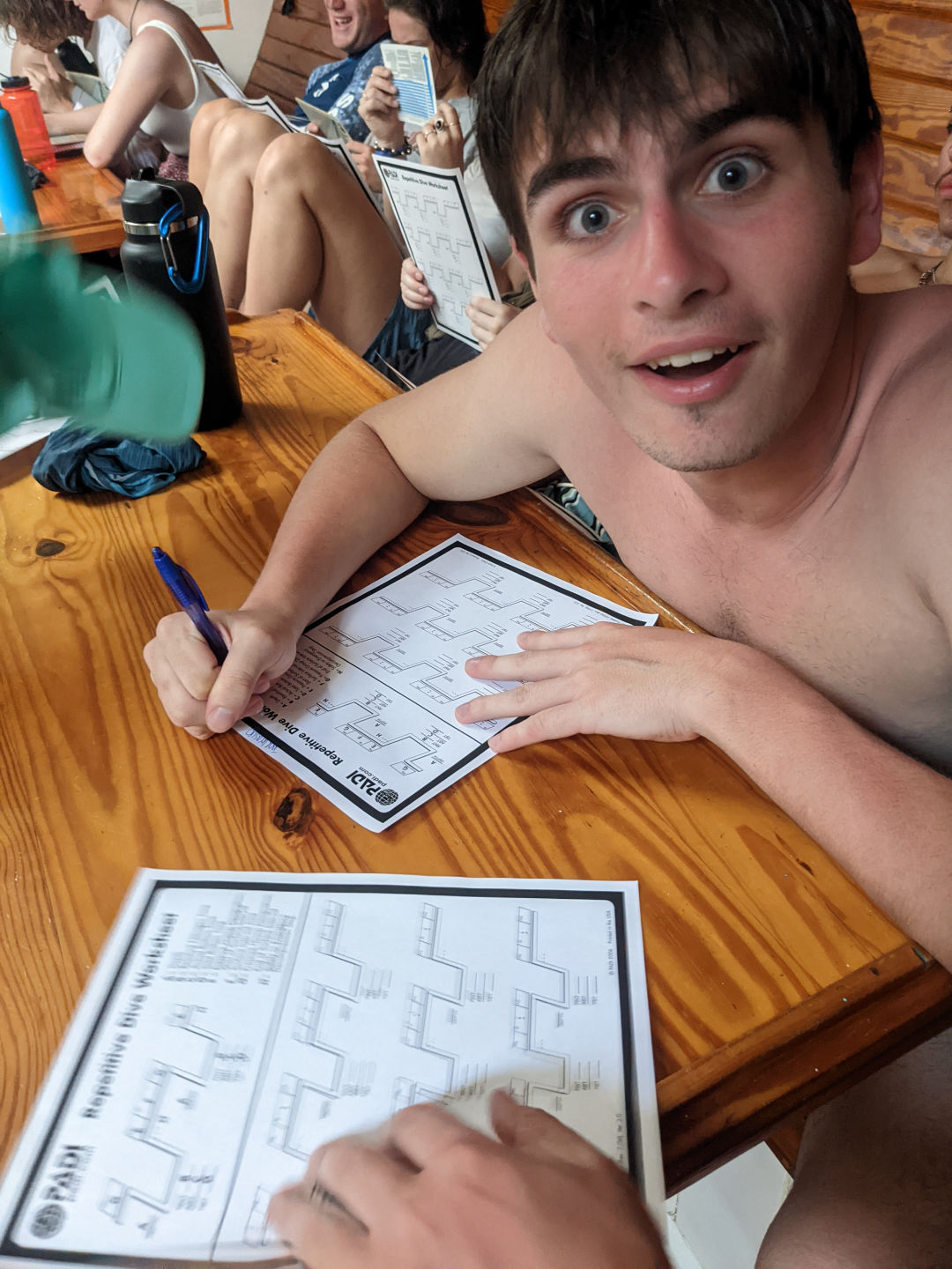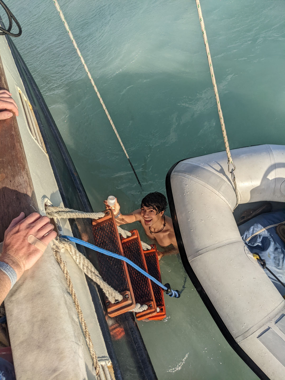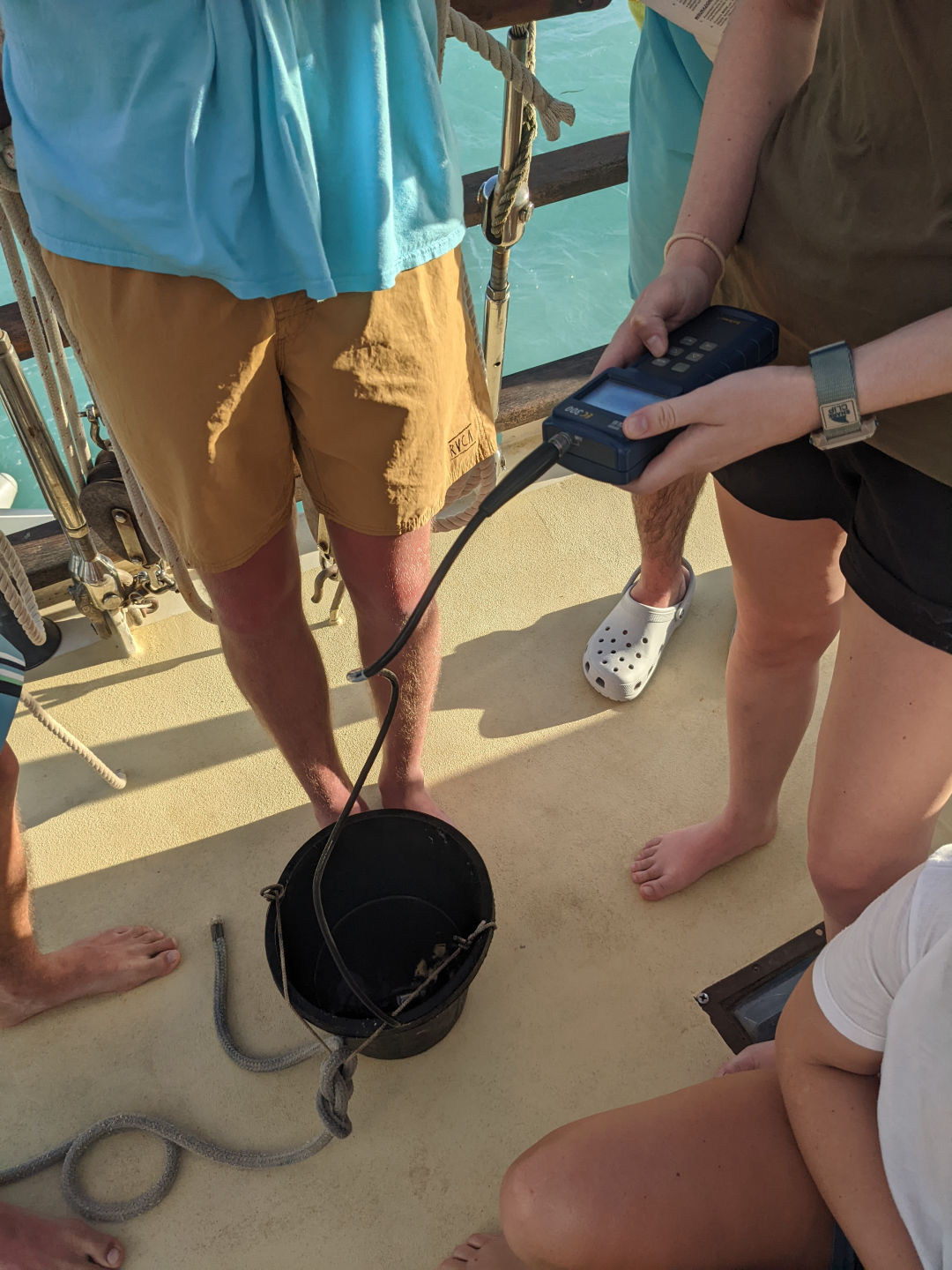 It was another fantabulous day on Ocean star! Waking up this morning and coming up on deck, we were greeted by a double rainbow before breakfast. Once clean up and breakfast were done, we had an intro to Oceanography with Sam, where we learned what the class would be like and what assignments we would be doing over the course of the semester. After we had the intro, the open-water students finished the last PADI videos and are one step closer to taking their first breaths underwater. While they did that, the certified divers were finally able to get in the water to do our refresher dive, even though the visibility wasn’t very good again today. After lunch, all the divers worked on RDP (recreational dive plans) tables and got better at them. Before dinner, we did our first marine science lab, where we got to check out all of the equipment that we would use for different labs during the semester. While doing the lab, one of the groups who was looking for plankton and other microorganisms found one tiny microscopic thing moving, and we all spent a good while trying to see it and then trying to identify what it was using our ID book. We couldn’t quite figure it out, though, since getting it on the slide was incredibly difficult. Not only was the food all day delish, but it was also the first day of students being head chef, and Sara did an amazing job. We got to readjust the anchor a few times today due to the wind and swells we have been getting, and we had another absolutely beautiful day in Antigua.