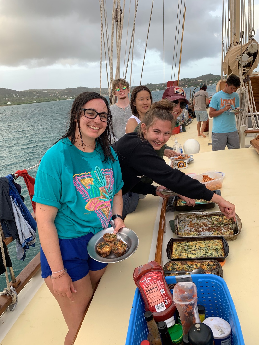 Lunch consisted of a delightful English meal of “bangers and mash” prepared by our wonderful head chef Calum and sous chefs Nicole and Nic. After our meal, we went diving, where we saw an octopus, hermit crab, and sea urchins, as well as practicing our navigational skills with our buddies. Meanwhile, Alice and Alex went on an exciting, fun dive and saw some Blue Tangs, stingrays, and Barracuda.