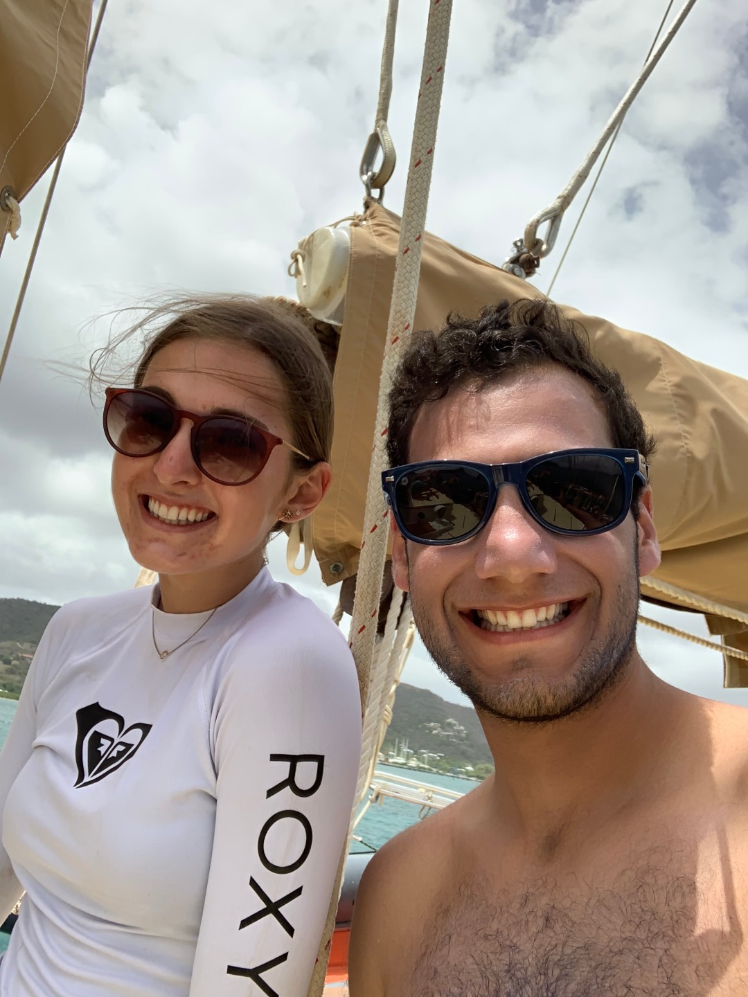 After learning about algae, mangroves, seagrass, and much more for a quite informative hour, we were about to start our seamanship lesson from Calum when he ordered us to walk the plank into the warm Caribbean waters to wake us up from our zombie-like state; due to our late-night shenanigans. We learned about all sorts of boats and safety measures and finished up with a bowline tying lesson. Before lunch, we set up our scuba gear for our afternoon dive, where we would practice our navigational skills with compasses.