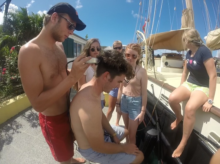 The day only got better with some radical surfing, but before that and while waiting for our surfboards, we had an amusing time as one of the crew members decided he needed a good haircut.