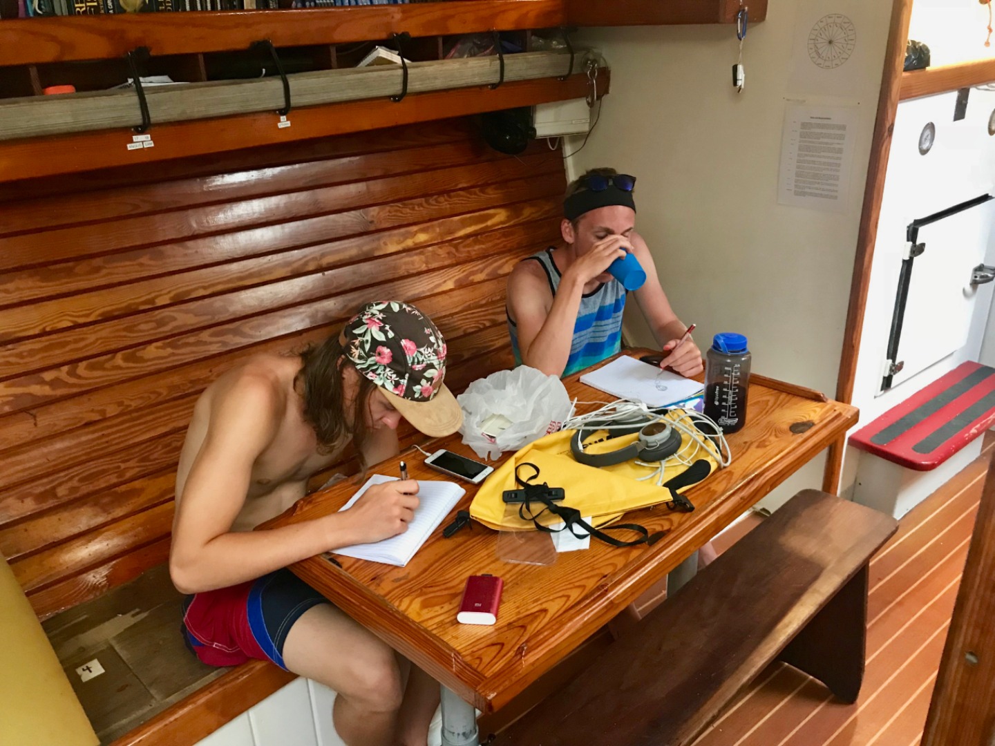 Today was the second day of our three-day voyage to Grenada. We were split up into three watch teams to alternate who is on deck, helming, and monitoring the boat, and who gets a break! The 4-hour watch shifts were entertained with music, storytelling, and watching the waves and stars. Many of us used our off-watch hours as a much-needed way to catch up on work and sleep! Some of us also began the advanced scuba course knowledge reviews while underway. We were all looking forward to the next day to finally arrive in Grenada and be able to walk across the deck without getting splashed by waves and the occasional piece of seaweed!