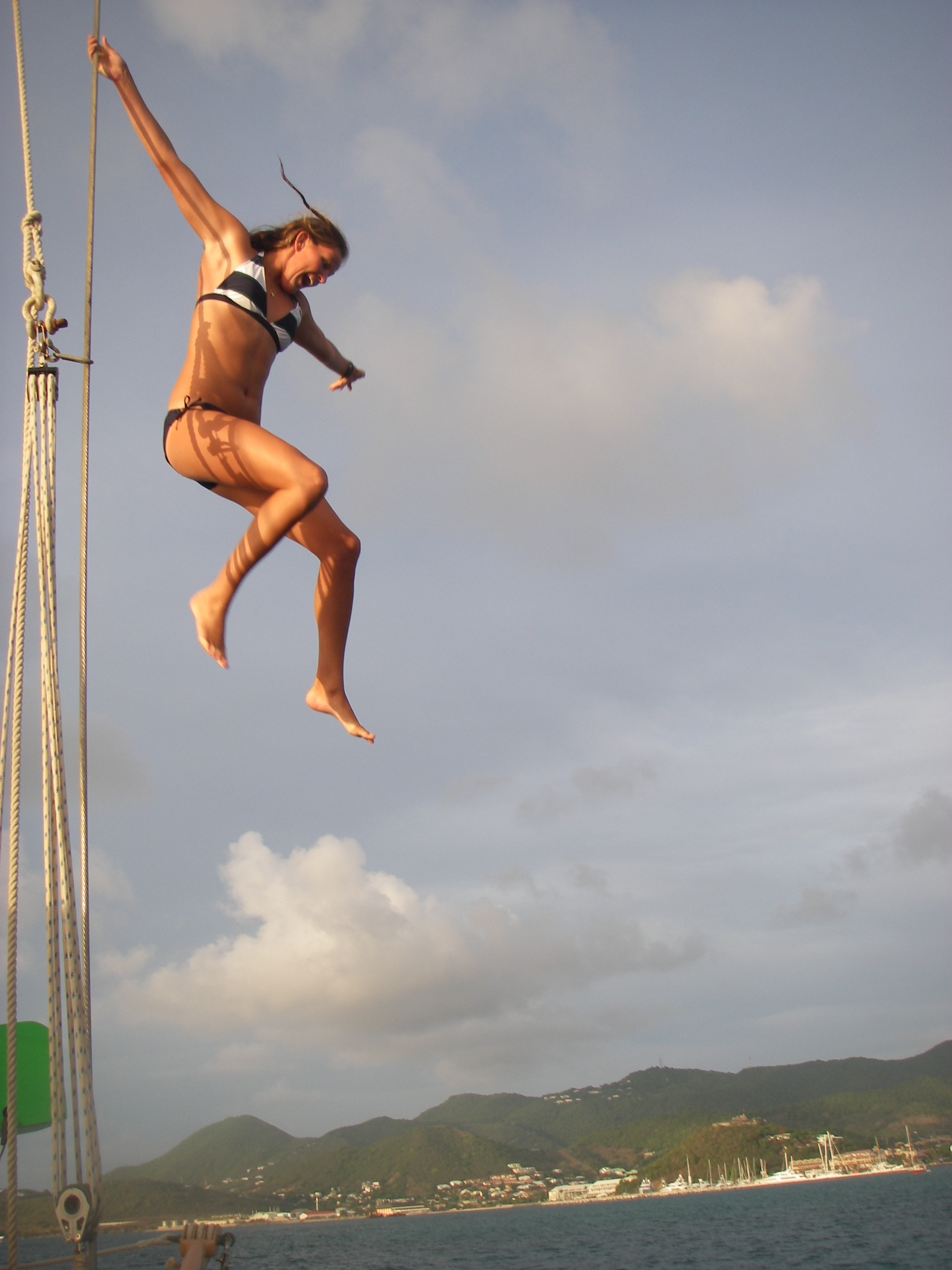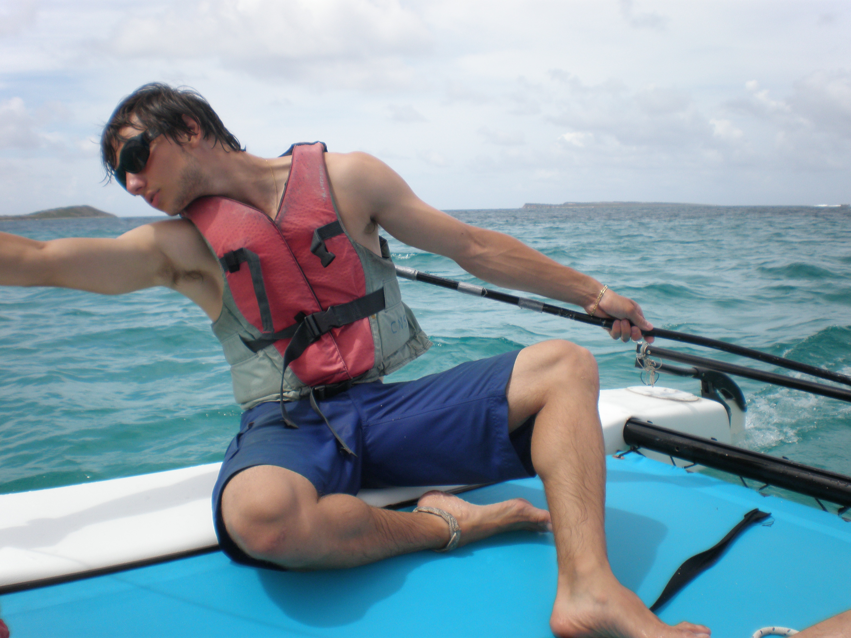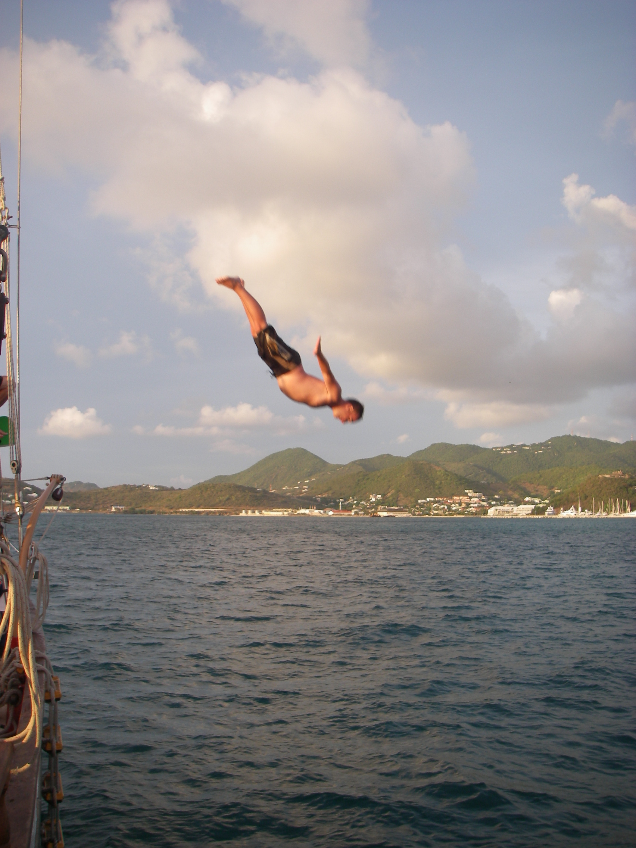 What a beautiful day. We awoke this morning to Captain Dan’s famous pancakes. This was followed by some MTE class and a little PADI work. Many of the shipmates then went ashore in St Marten for some shore time before we convened at 12:30. Our travels today took us to Orient Bay, on the Dutch side of the island, where we rented some Hobie-cats and practiced our skills at small boat sailing. It started off as a race around some buoys, followed by some sail practice and a little bit of beach time. Tonight we had a late dinner and prepared the boat for our sail to Saba tomorrow. Skipper Casey singing out..