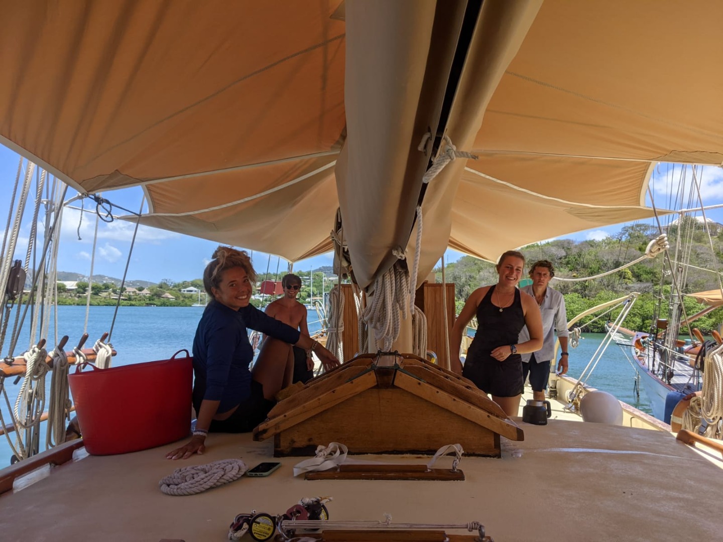 After spending 80 whole days with Katie Pope, I have learned one thing… Katie loves the children’s book Amelia Badelia. This happens to also be one of my favorite children’s books. For those who are unfamiliar, Amelia Badelia is left alone to watch a house and given a list of chores to do, but sadly she manages to mess up every single task. The first thing on the list was changing the sheets. Ash got straight to work unthreading the mainsheet and taking off the preventer, and swapping them with nice fresh lines. The next thing on the list was to clean the heads. Max volunteered for this and ran to shore with shampoo in hand. Steve left a note to muster in the cockpit, so Celia squirted mustard all over the cockpit.
