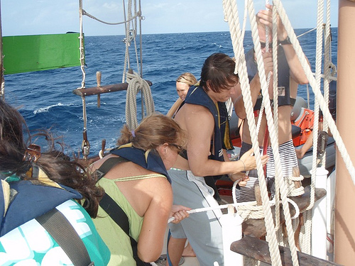 We got an early start this morning and left for Dominica around 7 am. Since people were better prepared and knew what to expect, there was a lot less seasickness than our last passage. The wind was a little gusty on the way, so much so that we had to strike the jib and double reef the main. Everyone is starting to settle into the 3 hours on, 6 hours off watch cycle while underway and finding ways to get all our cleaning and meals done in a boat that’s pitching around. We are all excited to reach Dominica in the morning, where we can explore, hike, and do some more scuba diving.