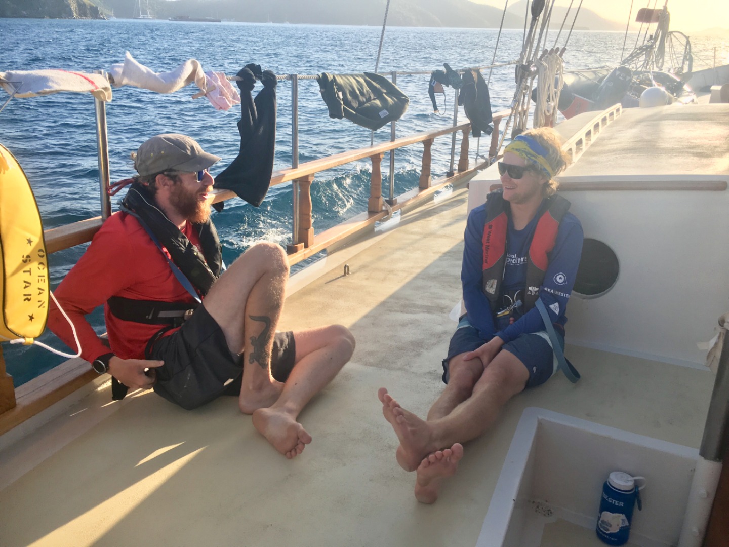 Today was a fine day to be a member of the Ocean Star crew. We started the day off on our mooring with a breakfast of apple tart and cereal. The tart was delicious and was by far my favorite breakfast I’ve had aboard. After our filling meal, we prepared our vessel for the voyage over to Salt Island. This entailed the usual processes such as securing scuba tanks, checking the salon for objects that may fall while underway, and securing our two dinghies. They are named Exy and Irv. After readying our vessel, the passage to Salt Island took about half an hour.