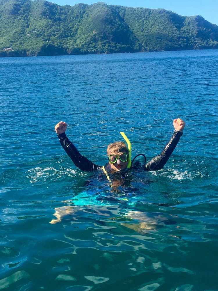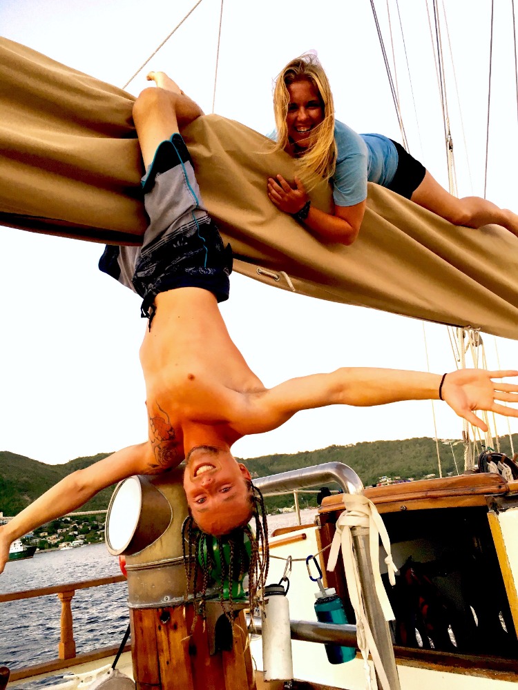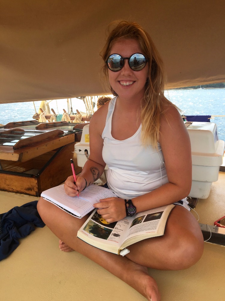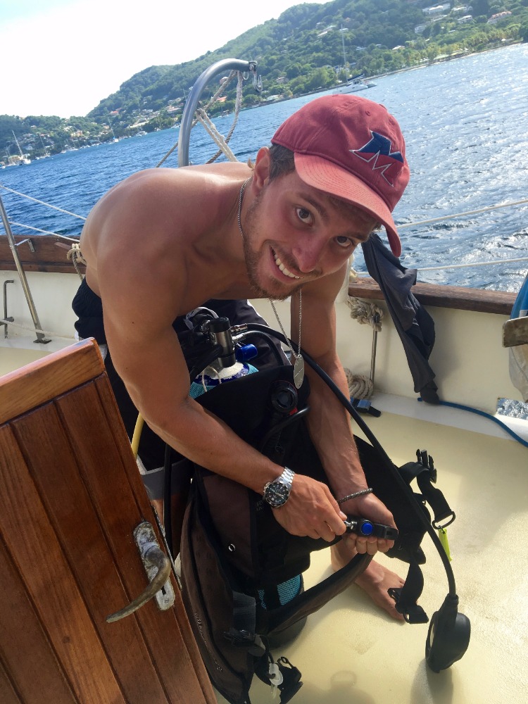 The sunshine spilling over the beautiful mountains marked the beginning of our last full day in Bequia. Our chefs of the day, Wallace and Mark, started us off with a taste bud-pleasing meal of huevos rancheros (scrambled eggs loaded with vegetables). We promptly put together SCUBA gear and headed to a nearby site for the navigation-training dive, number three of five, before gaining the Advanced Open Water certification. Students spotted colorful organisms during their dives, from an octopus to flounder and long-spine sea urchins! After returning to Ocean Star, an Oceanography quiz was taken. A scheduling meeting during which some of the students get to plan out the daily classes and activities that take place, all before lunch. The bacon for BLT sandwiches could be heard sizzling and smelled throughout the boat, so everyone was drooling by the time our food was brought up. After feeling adequately satiated, the students piled into the saloon for a Marine biology lecture on marine fishes. This lecture provided some helpful details supporting a previous lecture on fish identification, knowing characteristics and behaviors that distinguish different fish helps when seeing them during dives or snorkeling, and trying to remember ways to identify them later. Everyone was excited to have the rest of the afternoon off for studying and shore time and made it back just in time for evening showers and a filling dinner of vegetable-fried rice. Following clean-up, the students headed down for a Student leadership and development lecture before settling in for the night to get rest before a morning of sailing.