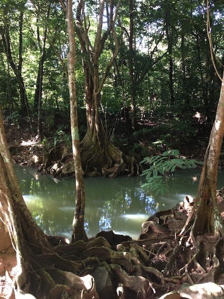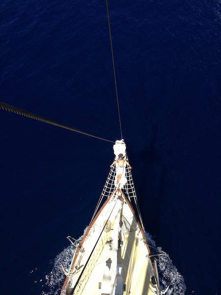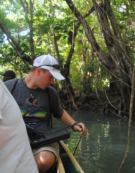 Today, we left our spot on the dock at Drop Anchor and moved to Portsmouth, Dominica. While en route, we practiced both the man overboard and fire safety drills. Will spotted our man overboard ring and kept watch until it was rescued by Ben and first mate Monika in the dinghy Irv. Then, for our fire drill, Bridget led us with the hose to put the fire out on the port bow. After our drills, I made it up to the crow’s nest for the first time since I have been on Ocean Star. Aylee and I stayed up there for about an hour while the chefs made lunch and the boat made its way into Portsmouth. From the crow’s nest, we spotted a huge turtle swimming next to the bowsprit as Brooke and Bridget sat bow watch. Once we arrived in Portsmouth, we got ourselves ready for our Oceanography lab on the Indian River. For this lab, we boarded two traditional rowboats, half the shipmates in one and half the shipmates in the other, and tested the temperature and salinity as we traveled three-quarters of a mile up the river. Considering the Indian River is an estuary, we gathered some interesting data when testing its brackish waters, finding the salinity at the surface to be around 3.2 parts per thousand when the salinity two meters down could be 33.3 parts per thousand due to the density stratification of the fresh and saltwater. For any fans of the Pirates of the Caribbean movies, the Indian River is also a river that was used in the second movie. There is a hut of one of the tributaries that appeared in the background. Day 50 ended with a cloudless sunset, dinner, and a Marine Bio class with Nick. It was a great day to begin our last month here in the Caribbean.