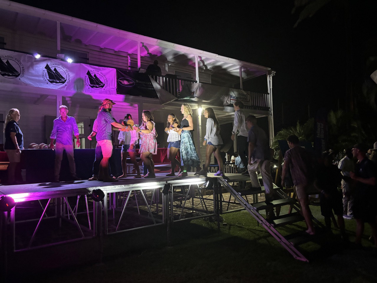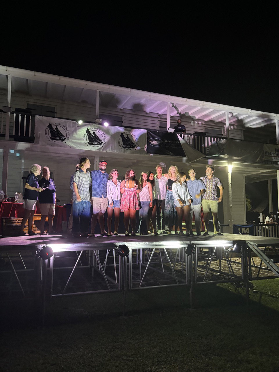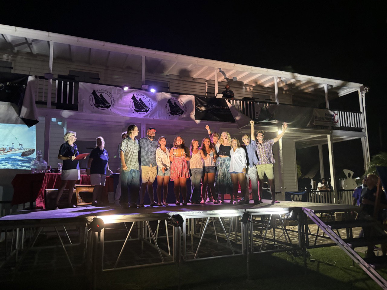 We love a clean boat around here, but today was not like an old boat appreciation day. Some call this MEGA BA for all the fun extra tasks involved. Judging by the singing and high spirits, I would say it may have been the favorite BA so far. Fueled with a warm spread of toasted bagels and fruit salad thanks to Zoe, Nick, and Ella, we cleaned all the gear that has been getting us through the semester, such as dive gear, PFDs (life jacket varieties), took off a few of our sails, deep cleaned the anchor locker, the bilges, the grey water, inventoried all our food and much more. Now Ocean star is looking beautiful but full of adventure, with gear hanging off every lifeline drying or PFDs being tested to make sure it holds air perfectly. Some jobs were grimier than others, but everyone put in an awesome effort to get it done in time for a swim break before heading to shore for the awards ceremony. The big news of yesterday felt even more exciting when our name was called out from the stage “and in the first place, OCEAN STAR”! The crew rushed onto the stage to claim this amazing representation of everything they have learned and accomplished as sailors this semester. Our big wooden first-place barrel can be seen in the photos below, but the value of the moment is hard to convey.