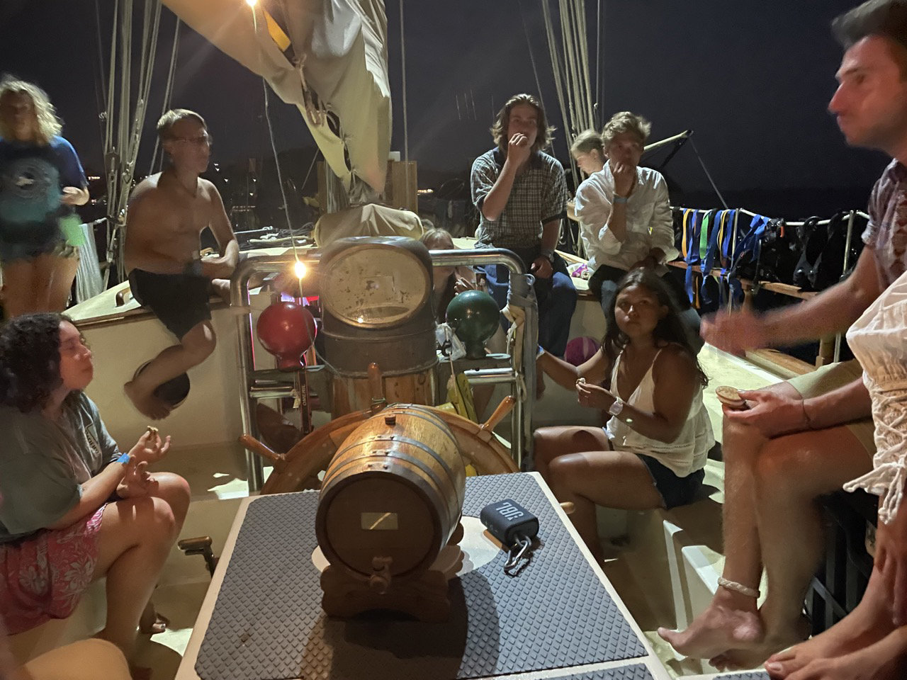 After a few hours of dancing and chatting with the other crews and enjoying the energy of the night, everyone made their way back to Ocean Star. I had been on board for the ceremony, so I surprised everyone with some s’mores and fairy lights in the cock pit for one of our last remaining squeezes. With our final night of anchor watches ahead, these last few days become even more precious and serve as a good reminder of the importance of living in the moment and making the most of it all, as I believe this bunch has absolutely embodied throughout their trip. It’s been a pleasure being a part of this semester.