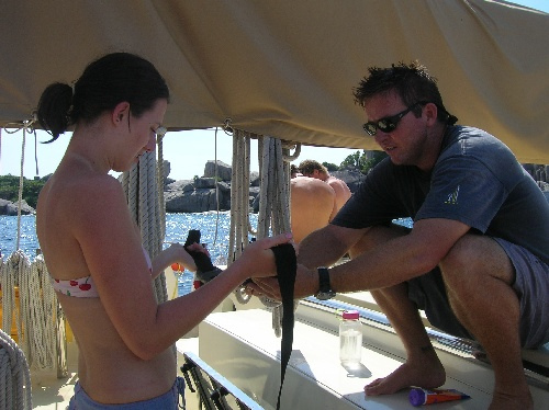 It was the first sailing day for our faithful sea monkeys (otherwise known as shipmates), but alas, the wind gods did not favor us. We reached land and headed towards the high ground for inspiration. Finding none, we decided to jump off. Later, a rock visit was made to Sail Rock in the hope of better winds. Dinner was sausages, and tomorrow, the sun will rise again. And so it goes.