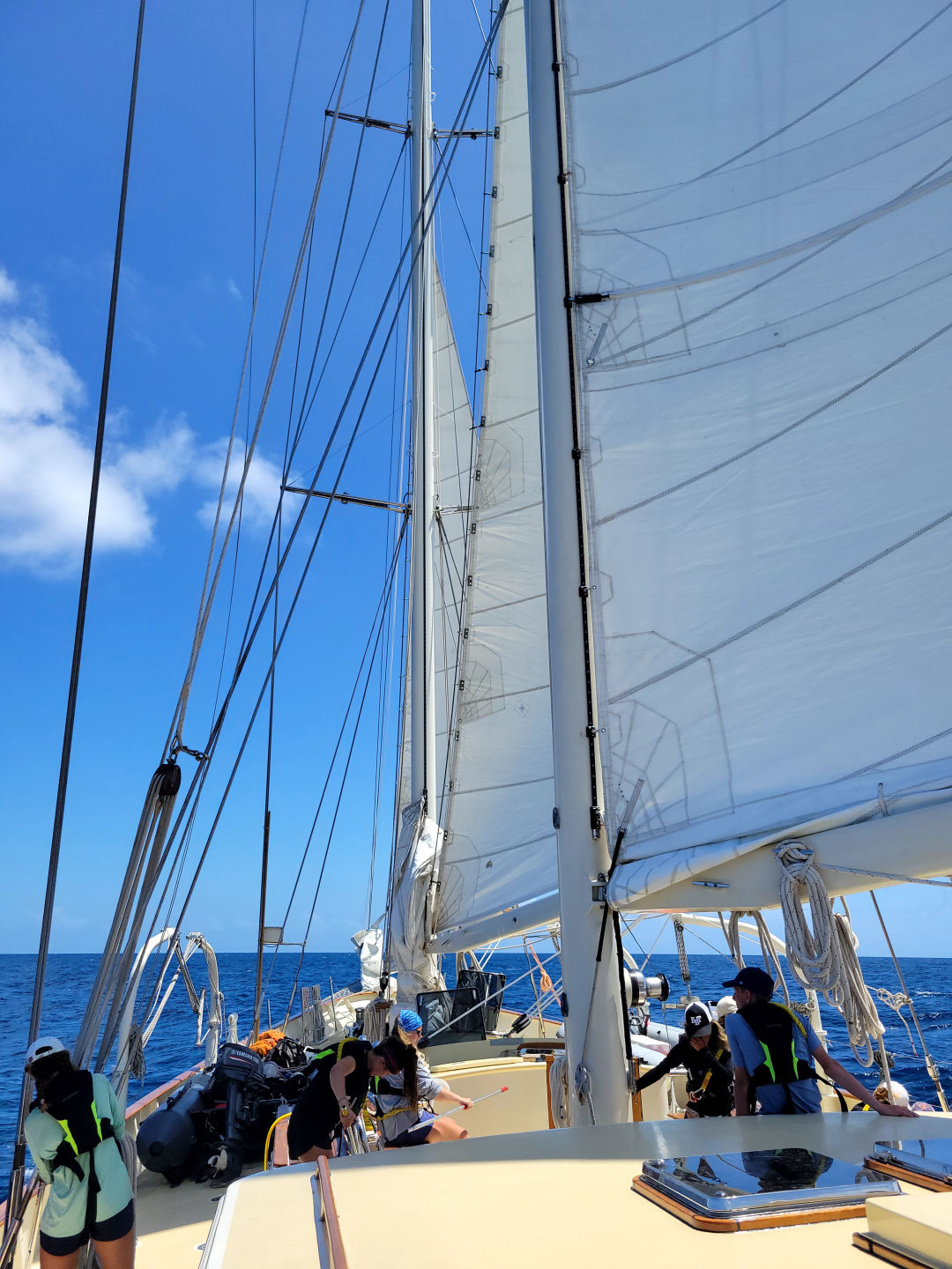 Raising the sails gave Argo and her crew that jolt we all needed to wake up and understand that this was real. Argo could be felt waking from a slumber that had lasted for far too long. Her sails fully extended, and the engine turned off. The students learned how to keep Argo safe, healthy, and afloat. They learned exactly what they would be looking for on their hourly checks. Everything about the state of Argo needed to be recorded, from the fridge temperature to the watermaker pressure. Everything had a place, a check, and a procedure in case something went wrong.