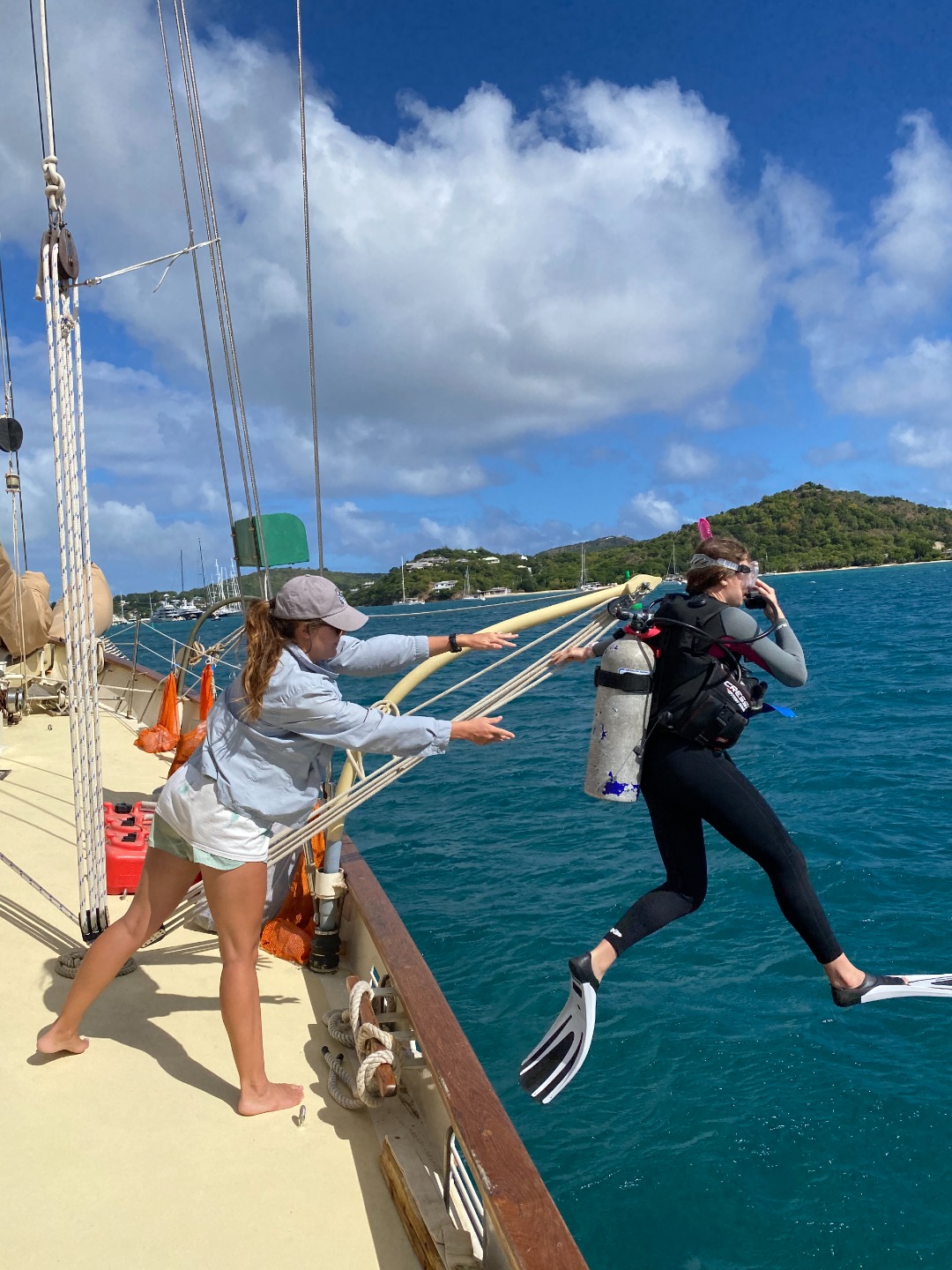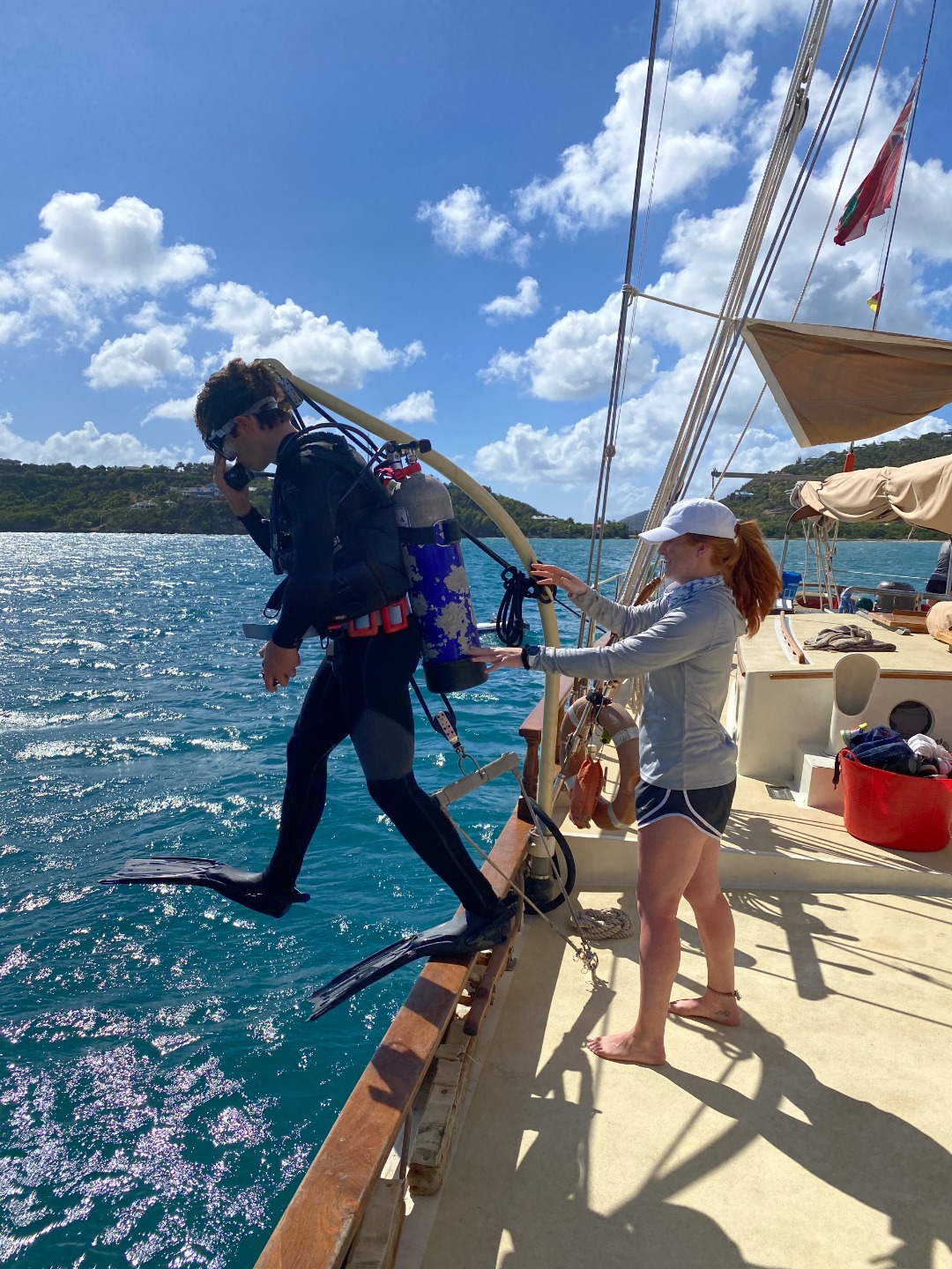 Photo 4- Celia, Keaton, and Johnny free diving and climbing around the boat