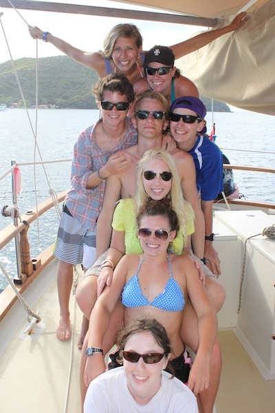 Day 10 started off with some shore time in Road Town, Tortola, to do provisioning and exploring. Everyone was stoked to go on land and get their coffee fix and do some shopping. The real adventure began, however, when we got back to Ocean Star. Headed from the BVIs to St. Kitts for our first passage!! With about a day and a half at sea ahead of us, we all dawned our PFDs (personal floatation devices), raised the sails, and broke into our three watch teams. Team 1- Captain Jack, Ivy, Boots, and Noah. Team 2- Matty, Shea, Brandon, and Megan. Team 3- Tor, Mollie, Sam, and Jon. Watch is a 3-hour time period where you and your team sail the ship and do hourly maintenance checks and charting. So we all get three hours on deck sailing and 6 hours off to relax. This first passage was rough, and Mother Nature got the best of over half of our shipmates via sea sickness. As it stands now, only Shea, Noah, Matty, and Ivy remain in the No-Chuck Club. Regardless of how they felt, everyone did their best during their watch hours. It is pretty amazing to me to be at the helm, sailing under the starlight, with no land in sight. Onward to St. Kitts!