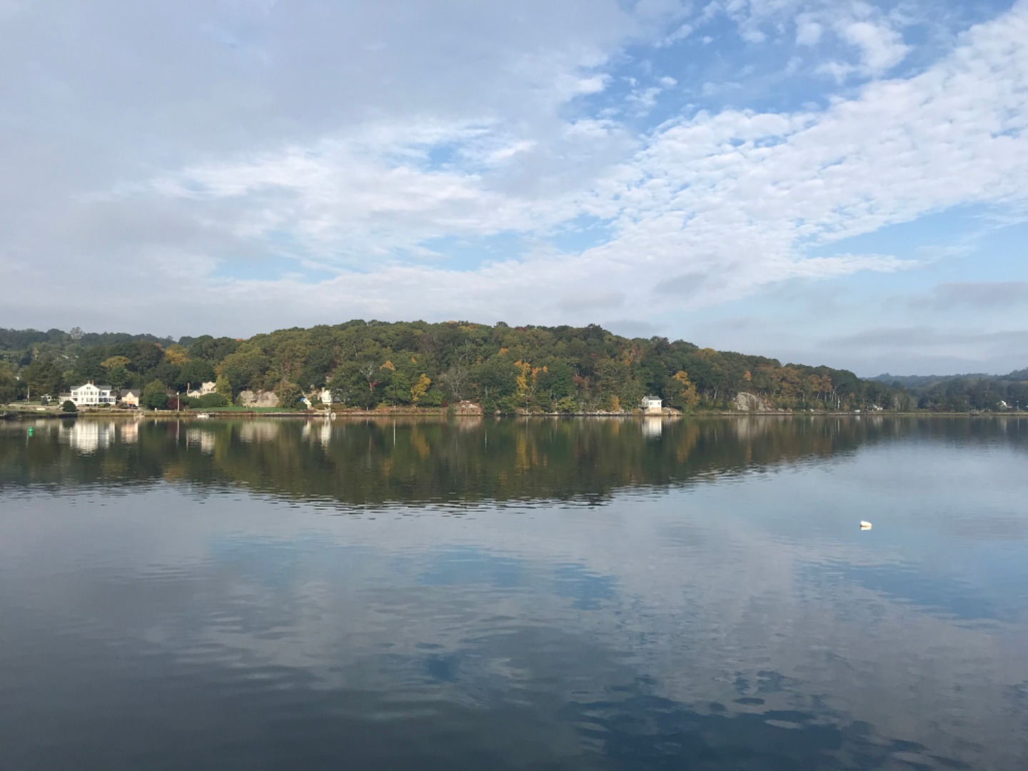 Autumn colors across the Mystic River, the crew having a time cleaning, Lolo carrying 1,000 pounds down the dock, The crew restocking all the food; Amanda, Sophia, and Mella having fun in the dinghy after helping nudge us onto the fuel dock.