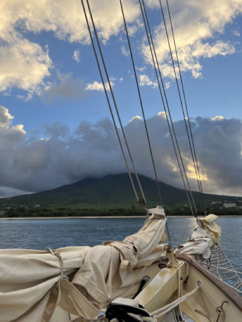 We arrived in Nevis early this morning. Watch Team 1 brought in the sails and allowed us to moor, and everyone promptly went to bed as soon as they could. Later that morning, we covered the sails and got everything secure for our next few days in Nevis. We then got to dive for a couple of hours, continuing the courses we had been doing and just having a great time. We saw different moorings and sea creatures while under and got through yet another portion of our dive certifications! After diving, we gathered down below for some more classes and then dinner soon after. After cleaning everything up, some of us got to night dive, something the rest of us will soon get to enjoy! Wishing all family and friends well!