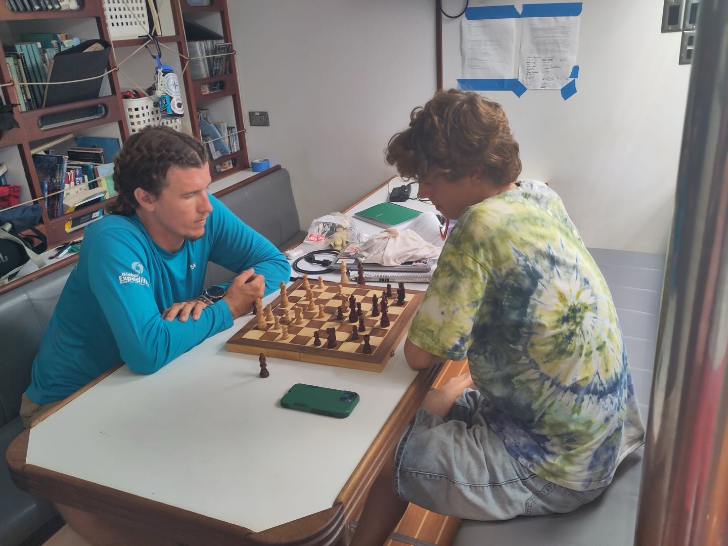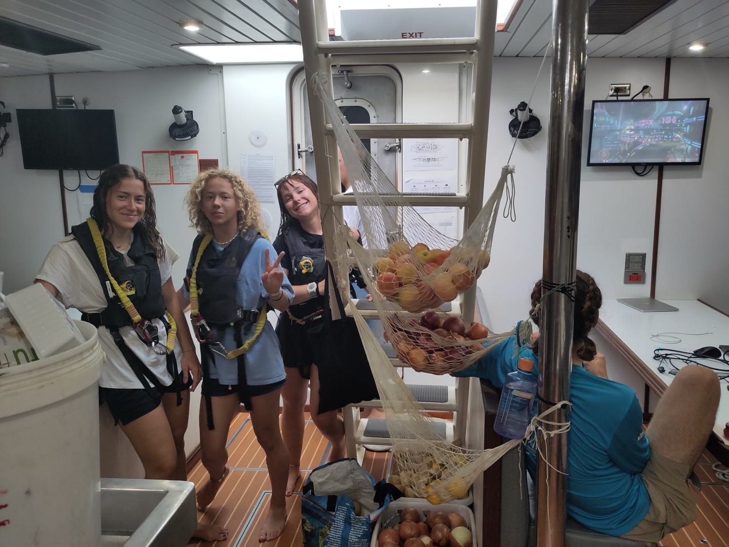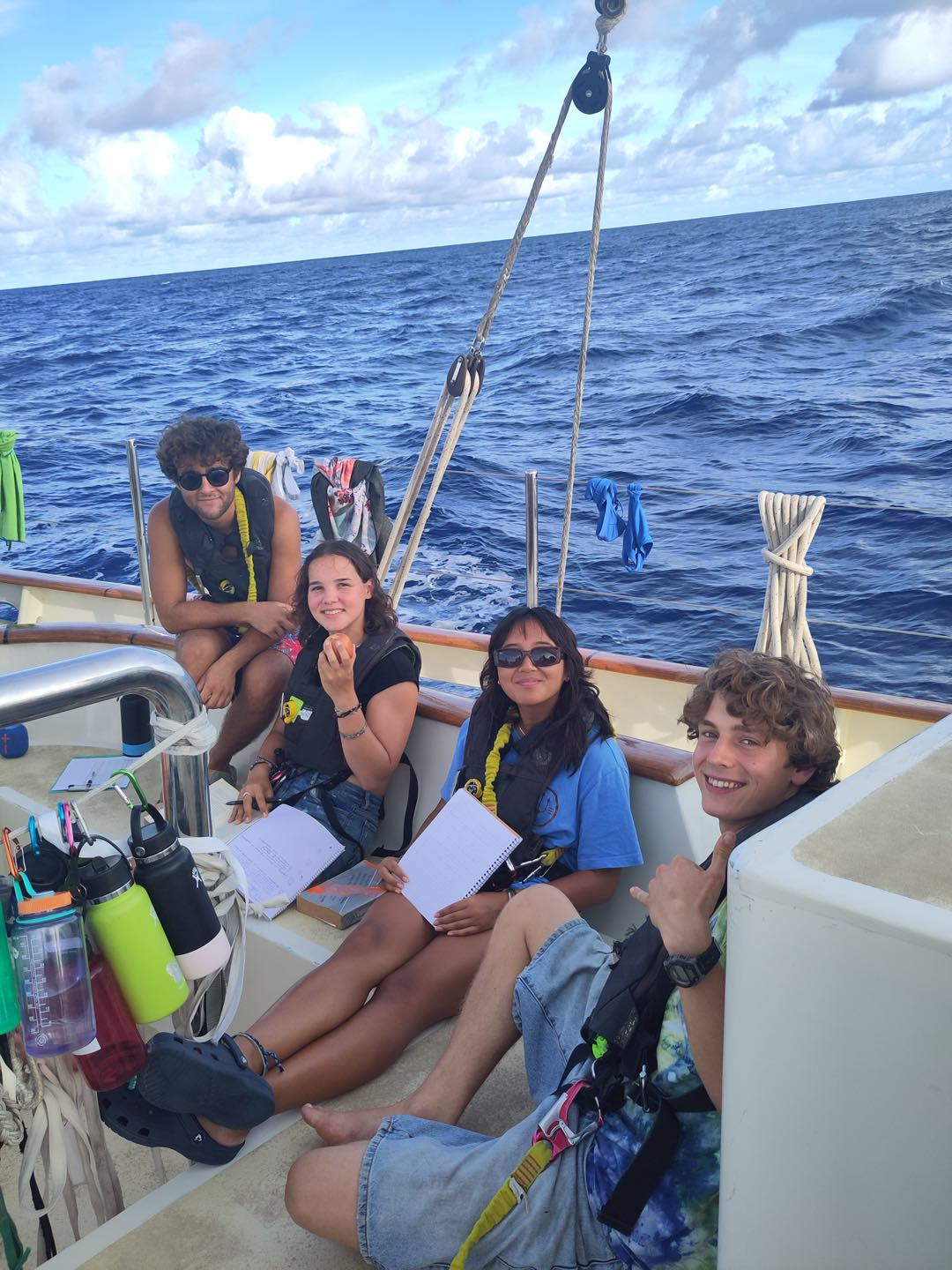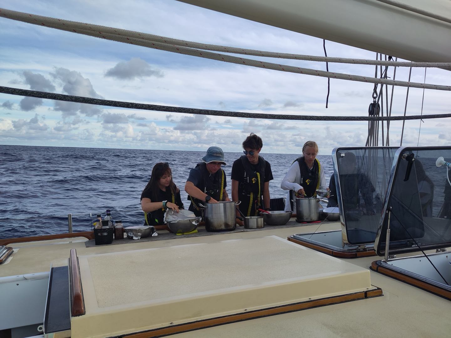 The day started early for watch team 4, on duty from midnight to 4 am. Maria (watch team leader for the day), Sabrina, Thatcher, and Luca got their work done. Amelia claimed as many boat checks as she could -and probably finished her book while doing so- and Bryson and Alexa prepared some funny wake-ups for watch team 5. Despite the efforts to keep themselves busy, all agreed it was one of their longest watches. Not for me. I had some really interesting talks with Thatcher and Luca, and the handover came earlier than expected.