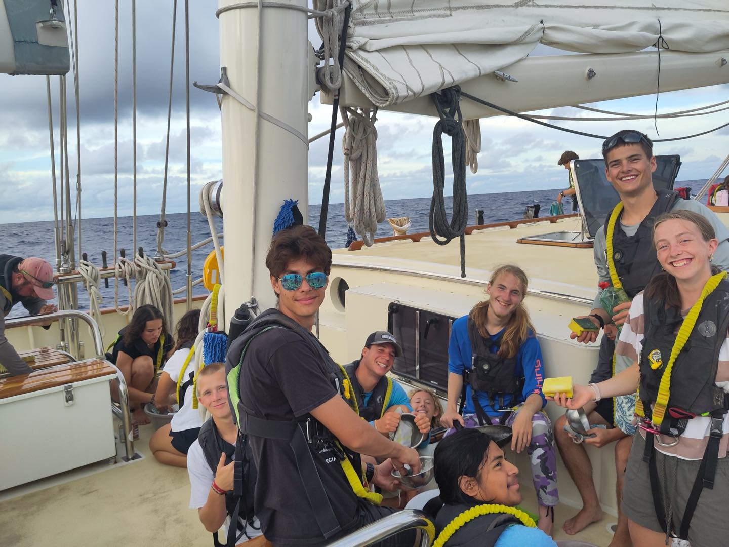 Chloe, Teagan, Teo, Hailey, Sam, and Emily, led by Rachel, scrubbed the floors in their8-12watch. After lunch, the crew learnt about evolutionary adaptations in marine species during Oceanography, followed by an entertaining debate on the role of AI, hosted by Aidan in their Leadership lecture.