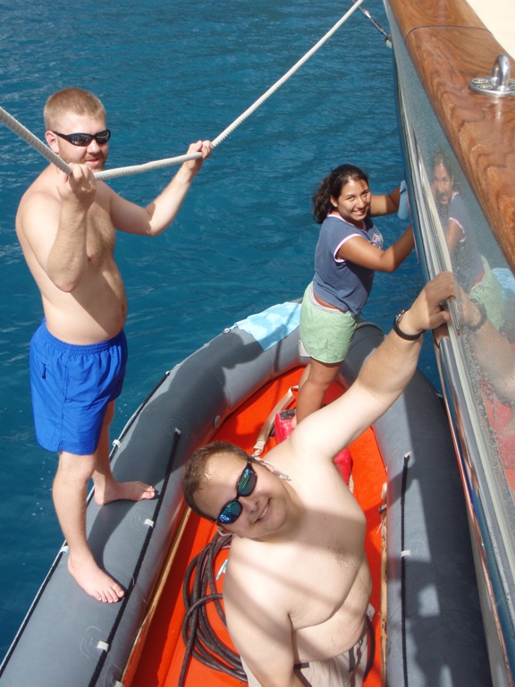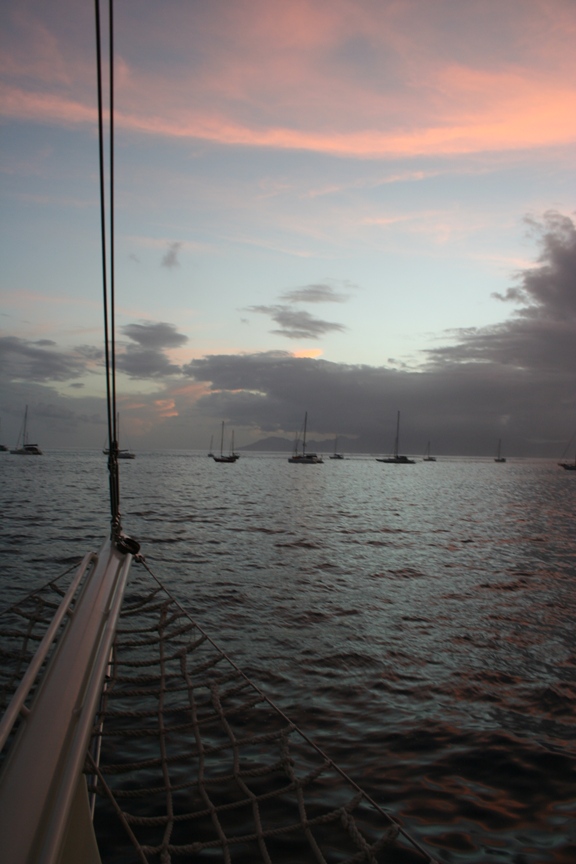 The day began with the dawning of a new adventure – literally. Last evening, we began our first real sail, putting Argo in her true form, and arrived this morning at dawn to see the outline of Huahine as the sun broke the horizon. It’s hard to imagine perfection being replicated, but that’s what today felt like – leaving paradise only to arrive once again. Huahine welcomed us with lush green mountains, deep blue waters, and perfect weather. As we entered the protected bay through the channel, perfect A-frame waves broke over the reef to our port and starboard, instinctively following the reef line without being encumbered by a single surfer. After setting anchor, we said thank you to Argo for our safe passage by spending the better part of the morning cleaning the boat inside and out. The afternoon was spent ashore to explore, and the evening to enjoy the tasty culinary delights of our head chef Jesse. And just when we thought the day couldn’t get any better, we learned all about marine invertebrates in marine bio class; weird and wild, these critters are ubiquitous across the reef and the world once over but rarely get the credit they deserve. Off the watch schedule, we were all happy to hit our cabins at the end of the day for a good night’s rest.