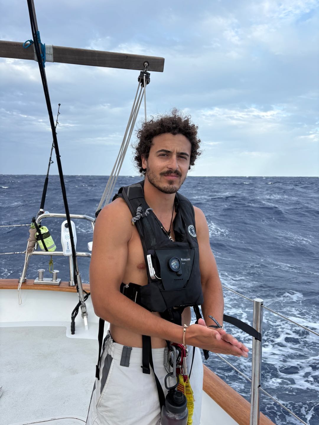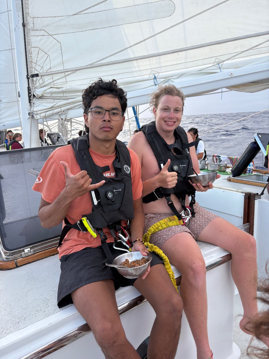 We are still sailing to Palau, and it’s been getting fun. Everyone has been getting their hands on some sail handling, and the conditions have kept it exciting. Every one of the students has been doing amazing with reefing and unreefing the sails, with each member seamlessly slotting into roles to get the job done.