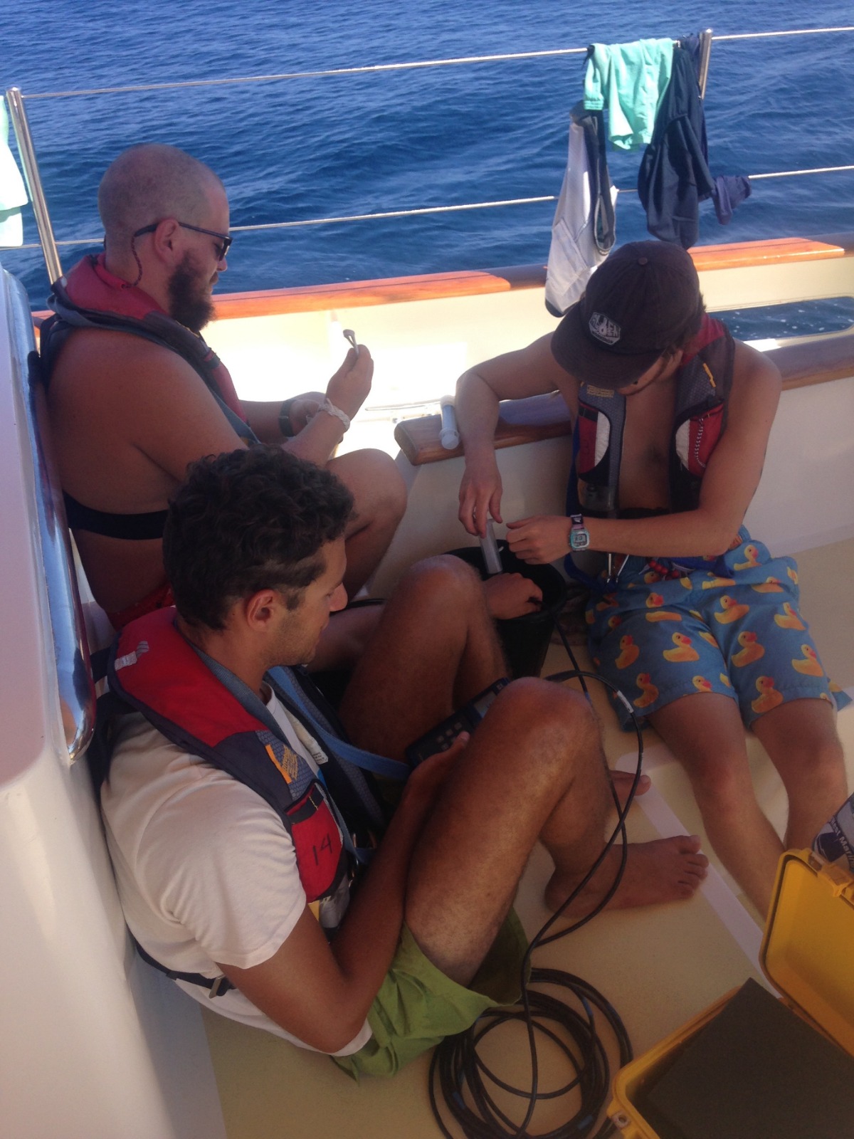 Photo 1 – Soofer, Xander, and I sampling the water for nutrients and plankton