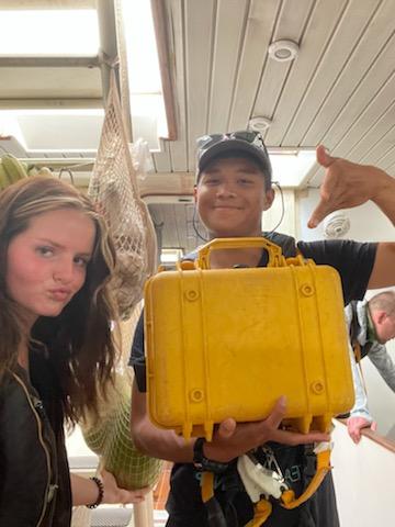 5. Max and Chloe with a yellow box