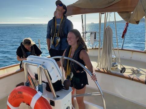 Anticipation ruled the boat today, as people woke up and made calls to home, expecting not to talk to anyone except our boat family for the next 20 or so days. Despite all the sail handling, all the provisioning, and all the excitement, it seems like people aren’t really sure if they’re ready or not. We could be, but how can we really know? It feels like standing on the edge of a cliff having only just been given wings and being told to fly. Who knows, maybe we’ll figure it out. The 25 people around me have formed a society that has begun to pass its first stage, and they welcome me every morning with my favorite thing, chaos. You’d think being around the same people non-stop for this long would be a catalyst for getting to know people quickly, and don’t get me wrong, it is, but I’ve also realized just how long it takes to truly know someone. I’ve made so many good friends, but there are still so many left to go. A week ago, I had thought I was already there. What a wonderful thing boat life is. And what a wonderful thing it is to not know what the next morning might bring, beyond the chickpeas I’ve set out for tomorrow’s falafel – oy vey.