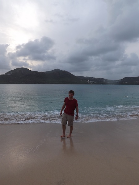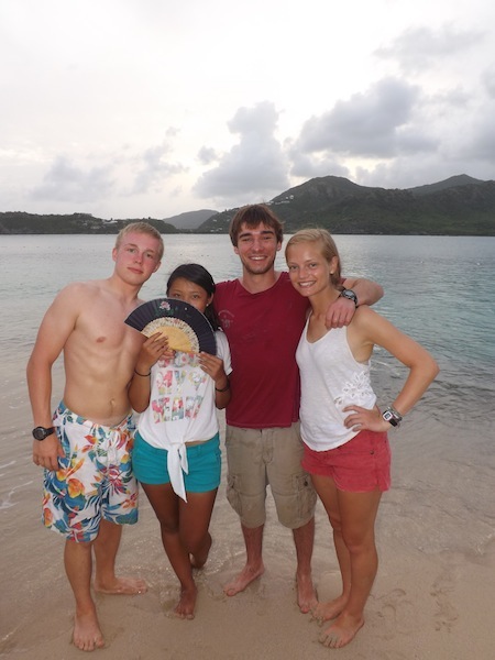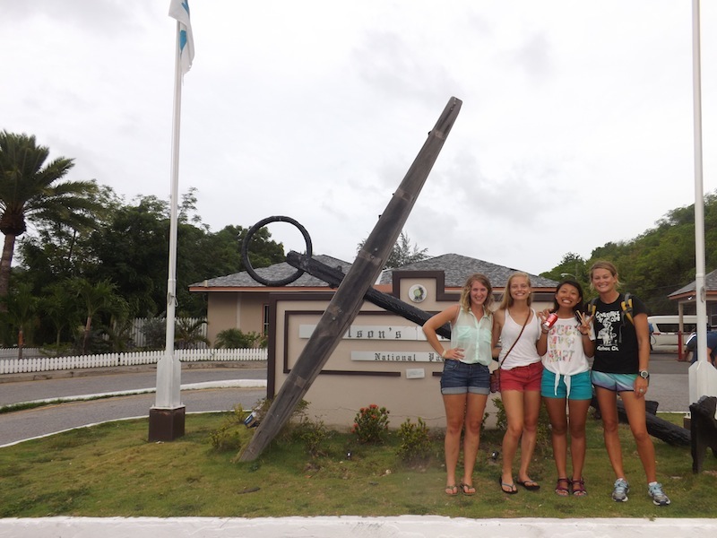 After a sweet five-hour sleep on a gently rocking Ocean Star, we awoke to sunny skies and the lovely surroundings of Falmouth Harbour. We washed up the dishes, tidied from the previous day’s adventure, and reflected on the passage. With the engine fired up, we made the short trip around the headland and docked at historic Nelson’s Dockyard. This National Park was once the home of Admiral Horatio Nelson, and many of the dockyard buildings were constructed in the 1700s. Our traditionally-rigged Ocean Star looks at home here, though she needed some loving care after her 32-hour passage. We washed and waxed her, and now she’s the highlight of the dockyard. After boat appreciation, shipmates enjoyed shore time, taking the opportunity to do laundry and take a shower. When I walked past in the early afternoon, many of them were happily eating sit-down lunches at a cafe overlooking the water. In the evening, we packed up burgers and buns and walked to Pigeon Beach. A fire pit was dug underneath a palm tree, and Tor grilled up dinner. As the sun went down, we enjoyed good food, each other’s company, and the fact that we were on solid ground.