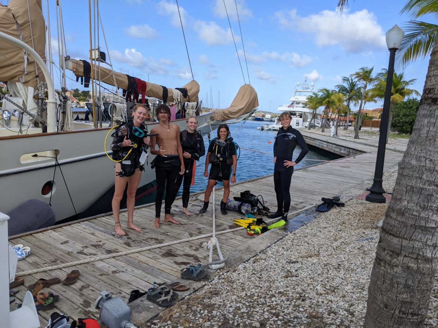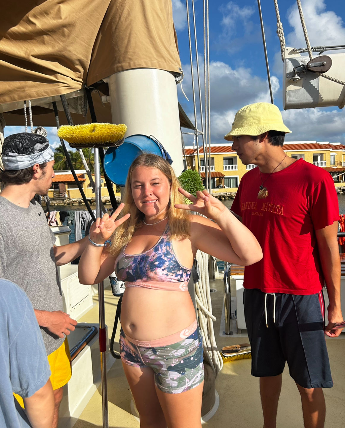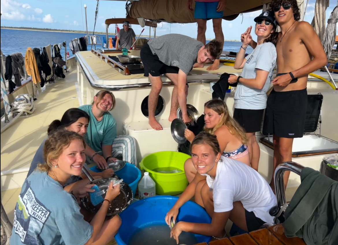 We started the day off with a hearty breakfast and went straight into class after cleanup. First up was Oceanography [oh-see-an-ography], where we learned about plate tectonics and oceanic hot spots [two riveting topics], which both play an interesting role in island formation. Next, we had Seamanship, which was dedicated to knot learning, boat anatomy, and line identification. Gabe is a great teacher and those of us who haven’t sailed before are finding his classes super helpful.
