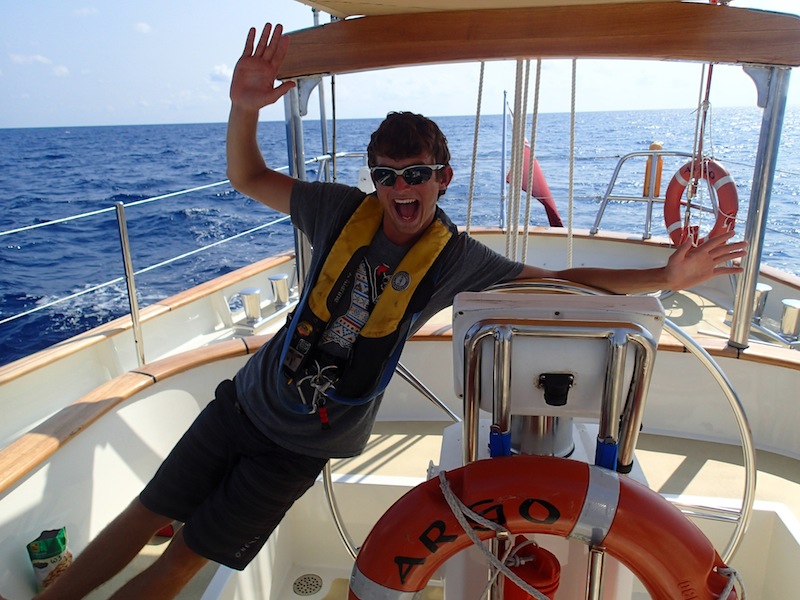 We woke up in Koh Samui to crepes and a beautiful sunrise. While the instructors went ashore to clear customs, we got the boat ready for our next passage to Koh Chang. After 80 days, it finally feels like we know what we’re doing, and we managed to have Argo prepped and ready in just 30 minutes, giving us enough time to splash around in the ocean before leaving. There’s something about water that just turns the oldest, most together people into complete children; it’s wonderful. We lifted anchor after lunch and spent the afternoon studying for our Navigation Master exam, practicing plotting, and determining the course to steer on our charts. In true college form, most of us napped before dinner. Kris and Laurie surprised us with a fabulous fusion of American and Thai cuisine: apple pie spring rolls.Clean up was followed with a can-throwing contest. We lost several cans of beans to equatorial heat and had to rid the boat of them. Forrest brought a new level of intensity to the game when he started to count in German as everyone stretched their arms back before launching. Hunter, the crowned victor, taught all of us an important lesson today in that short people can still throw.