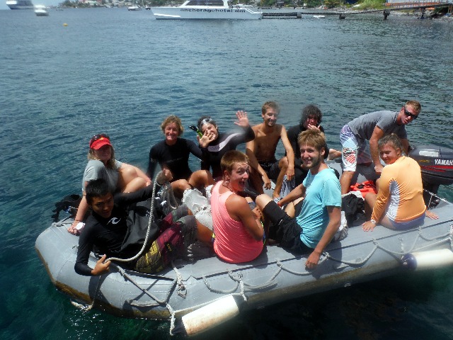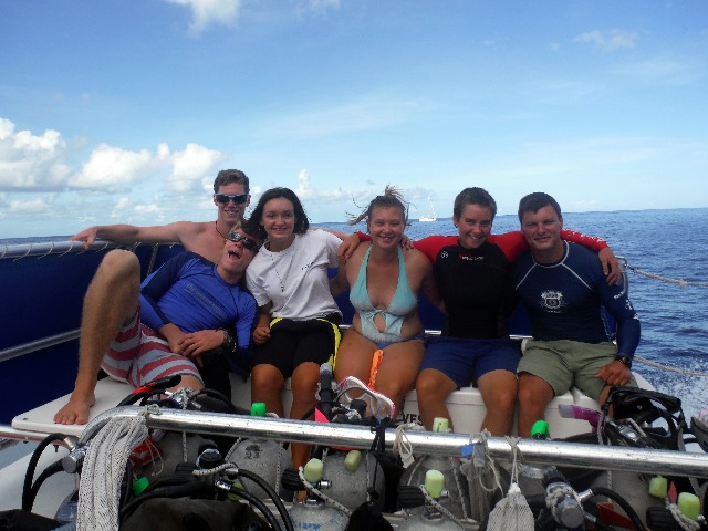 After waking up a little sore from yesterday’s memorable hike, all of us aboard Argo proceeded to hungrily scarf down some delicious crepes. These were topped with peanut butter, syrup, sugar, fresh fruit, or some interesting combination. Each did whatever it took to fill up before the morning dive. After quickly completing breakfast cleanup and sorting dive gear, we took off, full of anticipation, in Smoke for Dive Dominica, a rather renowned dive shop. Not long after our arrival, we were cruising along the coastline in one of their boats, prepping our gear. Twenty minutes later, we were at the site called ‘Witch’s Broom,’ which was a fantastic wall dive. With two tanks each, we were ready for two back-to-back dives in these unique waters. The first was along a stunning wall of coral that extended down into depths unknown. The sheer variety of life was breathtaking. There were innumerable eel & crab, large and small, a massive flat flounder, and an oddly eloquent squid. Not to mention the mass amount of fish, no matter where you looked. After an exchange of tanks, we were ready to descend once again. This time we were headed to the champagne bubbles at a site appropriately named ‘Champagne.’ with more beautiful coral and more stunning inhabitants. It was a truly odd thing to see those bubbles arise from nowhere and disappear to the surface and then to feel the radiant warmth of the Earth. Not long after, it was time to resurface and head back to shore. After a cold rainy ride back, it was optional lunch and free time. Some stayed back to work on homework or nap, and some made the walk into town in search of local cuisine, WiFi, or simply to experience this island on their own. We just had to make sure to be back in time to freshen up before squeeze at 17:45, which was followed by a dinner out at the Dominica Dive Shop!