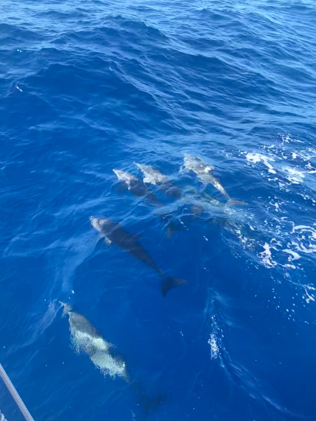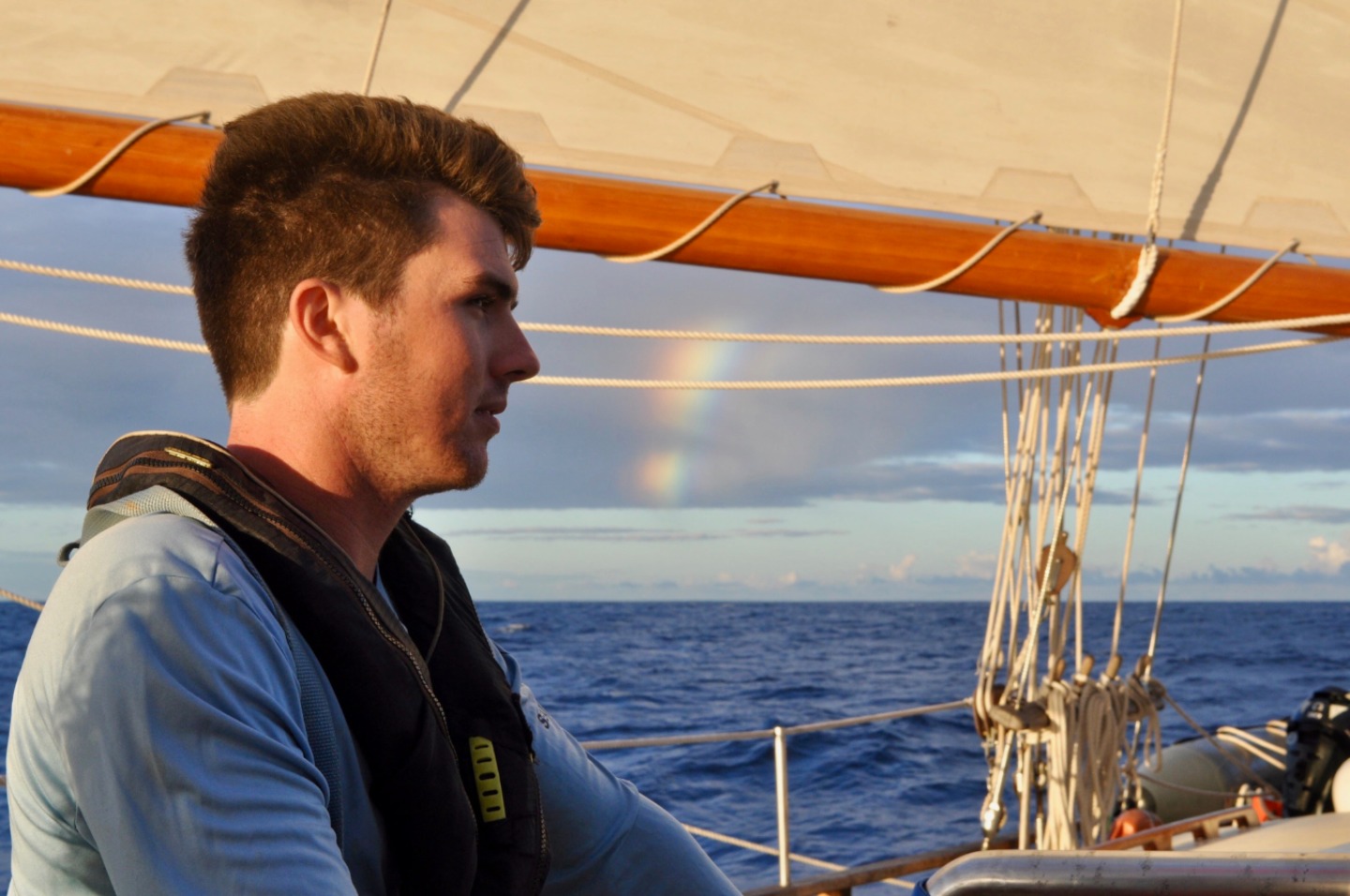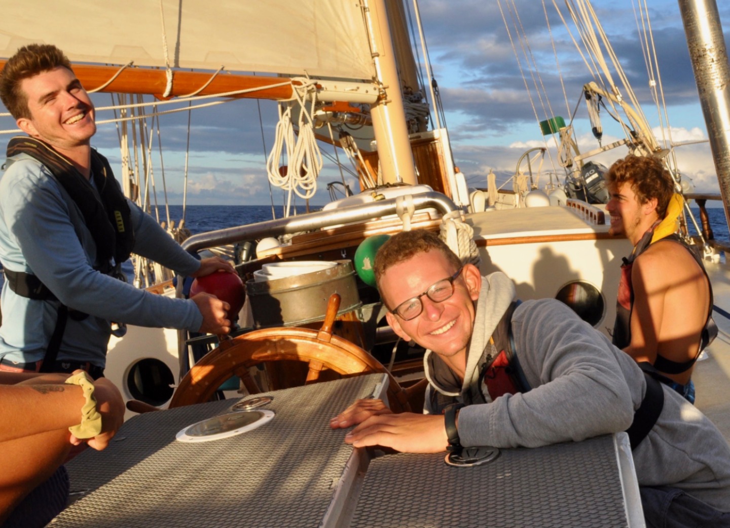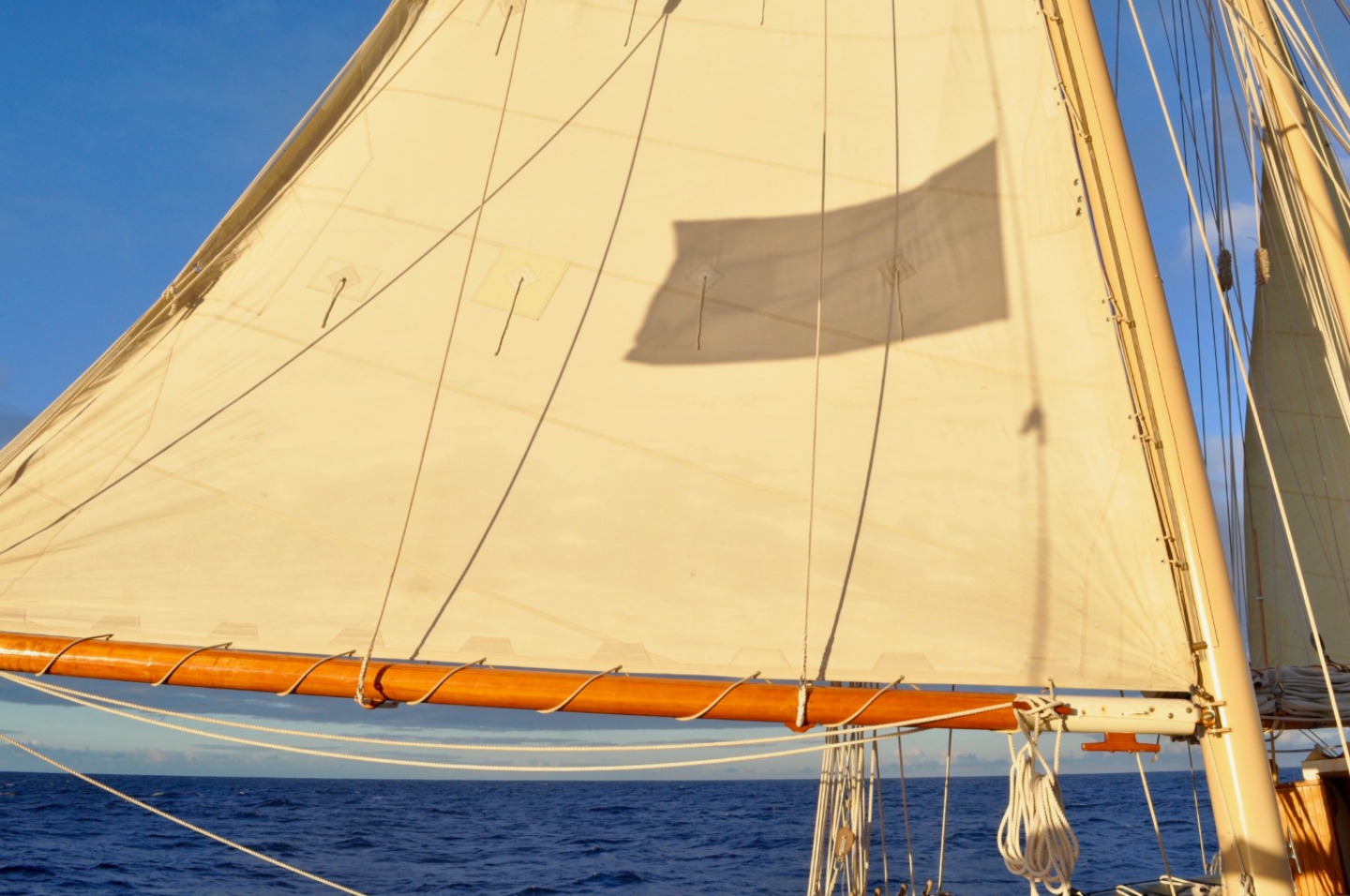 Sydney woke me up as she walked past me on her way to the head this morning. So I rolled out of bed to wake the rest of the crew up at 0300, bright and early for our sail back to the BVIs. By 0400, the mainsail and staysail were up, and we were on our way. Watch team one (Ian, Dasha, Sinclair, and Zach) took the first watch from 0400-0700. They got to witness the sunrise behind the island of Saba, and it traveled across the sky, exactly where Ocean Star was heading. Then, watch team two (Steph, Carolyn, Emma, Sam, and Ian) took over from 0700-1000. They listened to some tunes and, unfortunately, had to turn on the engine because the wind died down too much. Then I watched with my watch team (Steve, Sydney, and Will). Will and Dasha made us delicious Cuban sandwiches that we all enjoyed underway. Team 1 went back on watch at 0100 while everyone else headed back to bed. About halfway through their watch, I was told, they saw a huge pod of dolphins! Watch team two took over at 0400, and they woke everyone up to drop sails around 0445. Dasha and Will had already begun making Moussaka, and everyone got a quick shower in after striking the sails and tidying the deck before dinner. Dinner, as is every meal Dasha makes, was fantastic. Then, after clean-up, of course, the crew headed off to bed. CYA – Allie 🙂