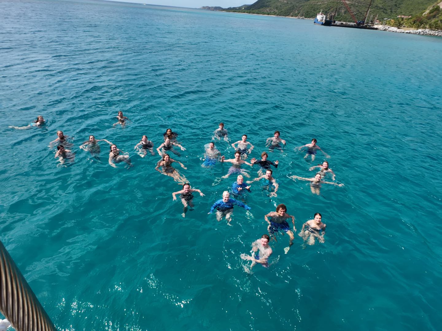 When we finally arrived at Savannah Bay, Henry helped drop the anchor, and we all got ready for our swim tests. Everybody luckily passed, but Brig swallowed a lot of water. In between activities, Emily and Lana went snorkeling. Next, we got ready for our first dive, where we reviewed skills from years prior. Emma, Mina, and Mimi were looking at a conch shell while Sadie saw a stingray. Avery watched a large fish swim by as well. After our dives, Lizzy took photos, and we took our first ocean showers of the trip, which were very refreshing. Jack and Peyton kept doing backflips off the side of the boat. For dinner, we ate lentil soup with homemade bread. Finally, we went over some policies for this trip and how to perform night watches. Now we are getting ready for our first rotation of night watches and settling into bed.