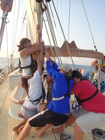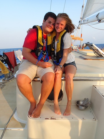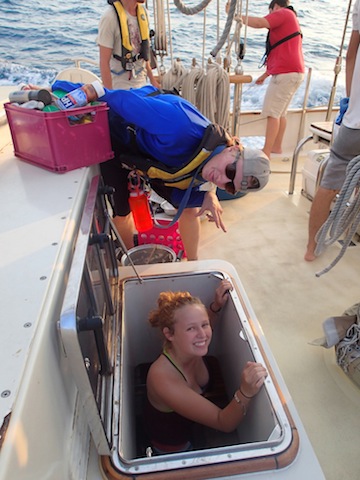 Another uneventful day is underway (which, for I’m guessing about 90% of the parents reading this, is relieving news). We had a review game of marine biology catchphrase to prepare us for our upcoming exam and then calculated the number of different types of fish we could eat in a month without consuming more than the recommended amount of mercury to illustrate the concept of biomagnification. There were a couple of delicious meals prepared and a large argument over lunch about the proper way to make use of applesauce. The English (represented here by Captain Kris & First Mate Jack) seem to think that just because Applesauce is a sauce means that it cannot be eaten by itself and that it must accompany pork or some other ‘main’ course option. And, extraordinarily confused by the greater American population aboard Argo eating the applesauce by itself, promptly launched into the applesauce debate. But really, the fact that I am writing about the lunchtime applesauce debate on the blog should signify to you what an uneventful day it really was. So, to spice it up a little bit, here is Argo Goes Hollywood: