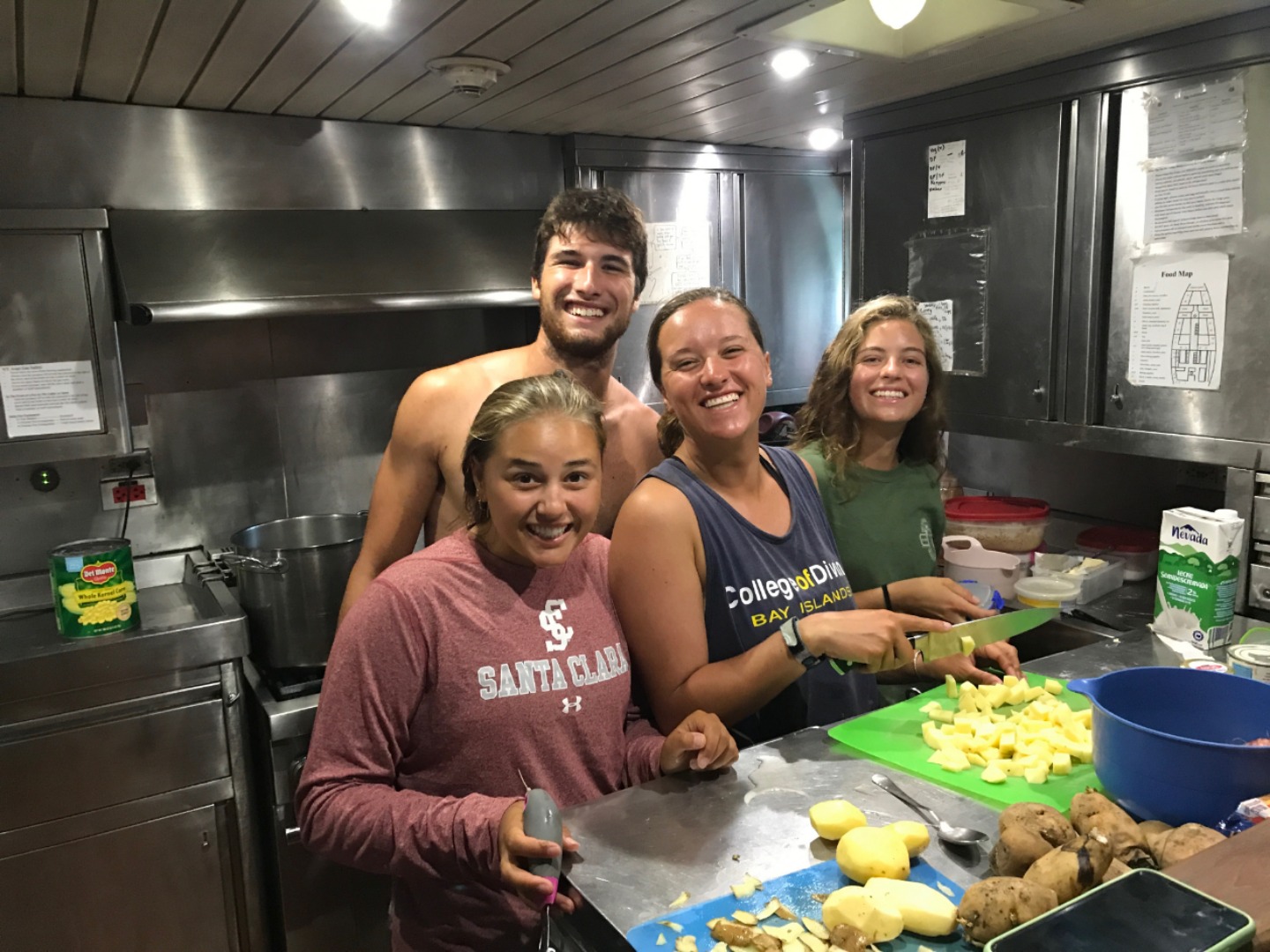 Niko, Renee, Steph, and Elie in the galley