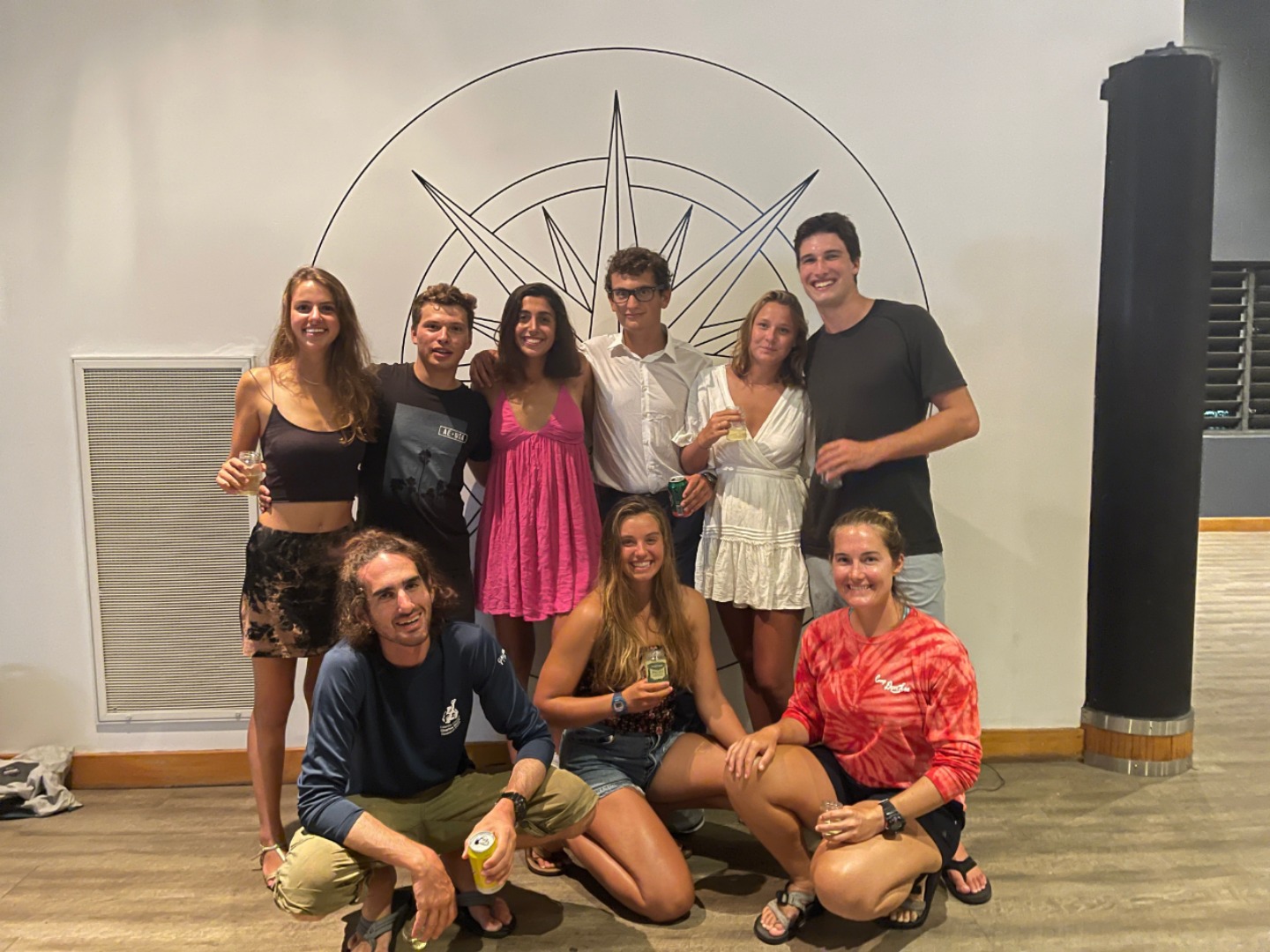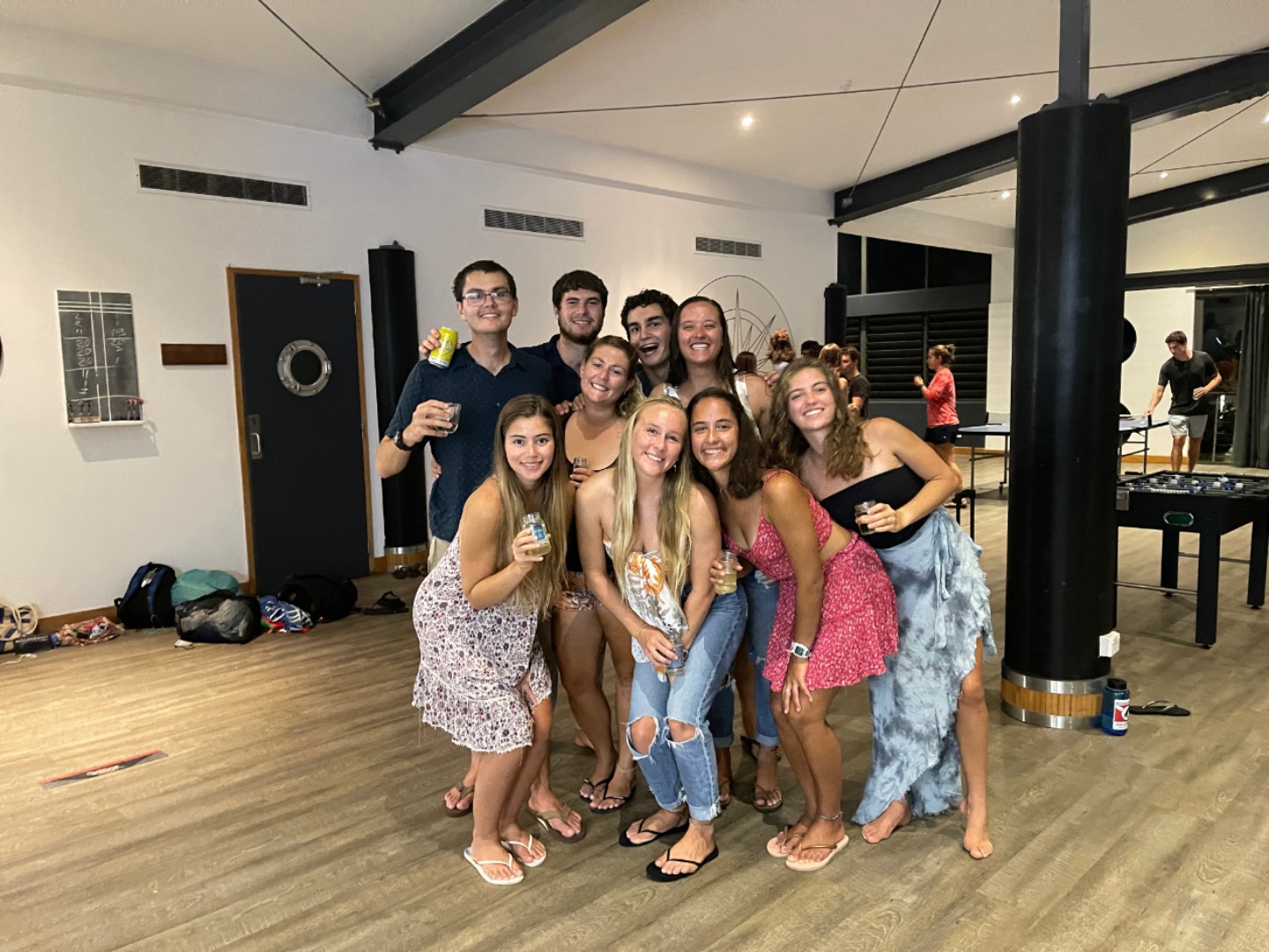 Who are we to thank for this mysterious treasure chest of an experience we had just stumbled upon? Geoff. A man who started a two-year circumnavigation trip twelve years ago made it to Fiji and hasn’t left yet. This host of ours, as interesting as he is generous, gave us private access to all of the marina facilities so that we could have the largest legal gathering in the country tonight. All of it, it turned out, exceeded our wildest expectations. The showers were huge, had rainfall showerheads, and were warm (!!!!!); the washing machines were plentiful enough for all of us to get through our massive pileups of passage laundry; and the event space, equipped with a pool, darts, ping pong, and foosball, also had a fridge stocked with a few local beers for us to enjoy with dinner. Somehow, with basically no time at all, the staff + Geoff had managed to throw together a magical evening with great food, a few drinks, and a group of intensely happy (and freshly clean) humans. Hot dogs and veggie burgers were consumed en masse, with cheesy bread, pasta salad, baked beans, and some chocolate candies for dessert. Best of all, once we had all eaten, the staff gave us one more surprise of a champagne toast (in glasses that were formerly our Nutella and pesto jars) to Argo’s longest passage and the massive accomplishment we had all achieved together. Many of us said it was the best champagne we had ever had. For the rest of the night, we danced, sang, ate, ping-ponged, pooled, toasted, took pictures and smiled for hours. It was a perfect conclusion to the passage and a beautiful welcome to Fiji and the hospitality of the Pacific islands.