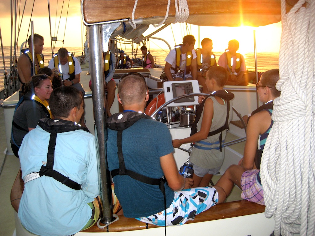 The days on our passage to the Marquesas have flown by. They have been filled with many watches, including hot watch, cereal watch, and sweat watch, studying for PSCT exams that are coming up, and learning more in OCB, OCE, and SLD. Today was different, aside from having watch. We basically had a “free” day to do whatever we wanted while we weren’t helming or doing boat checks. Normally, people choose to take naps, sit down with a good book, or study for upcoming exams. However, following lunch, we all participated in Argo trivia! We were split up into teams of four and answered questions relating to boat life, music, science, spelling, Argo crew, and facts. I enjoyed this activity a lot, and I’m pretty sure everyone else did, too. I liked how everyone could come together; it made the experience even better. The prize was great and included a huge bottle of Fiji water, a few Snickers bars, and Coca-Cola. The winning team was lucky to get these! But overall, it didn’t matter about winning the prize. I had a good time, and I’m glad Leah and Britt decided to do this with us. This definitely made my day better and put smiles on all of our faces. Thanks, guys!