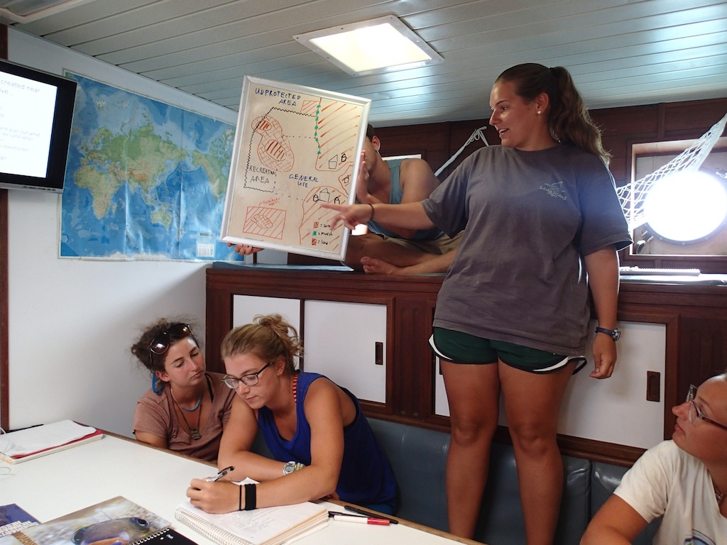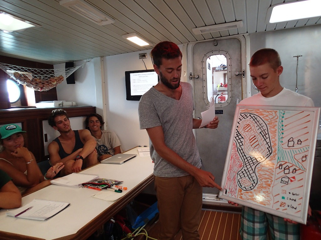 We started the morning, continuing our passage to Thursday Island. The day started early for some and late for others due to the different watch team rotations. Navigating the narrow channels in between the Tuesday Islands early on in the morning was a great way to start the day. We arrived at Thursday Island at 11 am and had lunch on board. Following lunch, we had Marine Biology, where Carolyn taught us the importance of MPAs (Marine Protected Areas). This was particularly interesting because we had just spent the last few weeks on one of the largest MPAs in the world, the Great Barrier Reef. This class included an activity where we looked at maps of the different regions of the Great Barrier Reef Marine Park and determined the different levels of protection involved. We all spent a little free time either playing games, reading, or relaxing. After every completed passage, we celebrate with some BA (boat appreciation)! This involves keeping Argo in tip-top shape by polishing her brass and silver, de-greasing the engine room, cleaning off the deck, and organizing the saloon. While Thursday Island isn’t necessarily a bustling metropolis, this is our first stop at an inhabited island since leaving Cairns. We are all pretty excited to reap the benefits of civilization again.