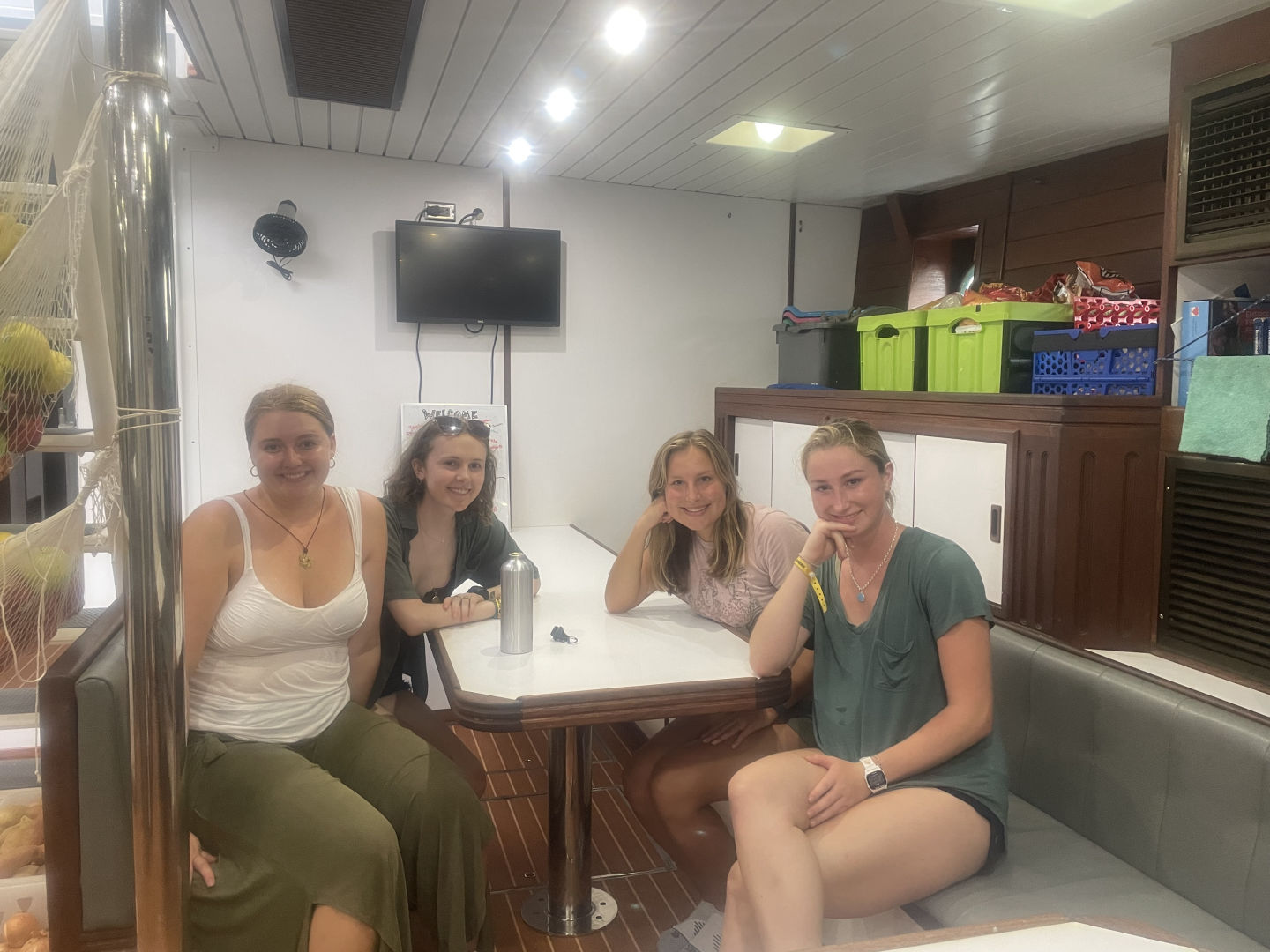Thanks to our head chef, Will, we enjoyed pesto pasta- a GXG day-one tradition. We then had our first squeeze; “What’s your name, where are you from, and what are you most excited for?” accompanying our day’s appreciation. Most of the appreciations were centered around everyone getting here (with all of their bags) safely. And shout out to Del, who appreciated how organized and clean Argo was when she arrived- the staff worked very hard to get her (argo) sothe night ended with announcements and clean-up. Everyone is now preparing for bed, getting to know the folks who will be with them for the next three months, and organizing their stuff. The vibes are super positive and full of excitement for the adventure they are all about to embark on. For the first time this semester, good night from Argo!