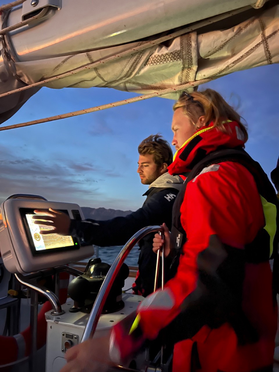 Watch team 1 (myself, Chloe, Watson, James, Theo, Liam, Ruby, Audrey, Sensei, aka Mac, and Emma) was the last team on watch. Pulling into port was awesome! This port is considered one of the worlds busiest, with constant movement of a variety of boats going in and out. Liam and I were put on bow watch for the ending half of our watch and got to use the VHF to tell the people back in the cockpit about boats coming off our bow.