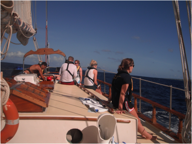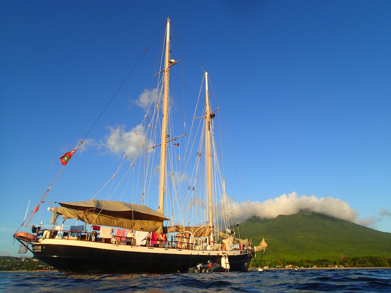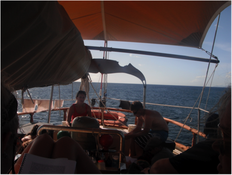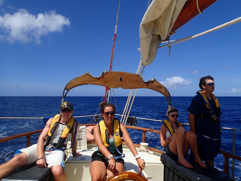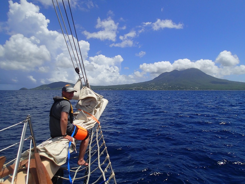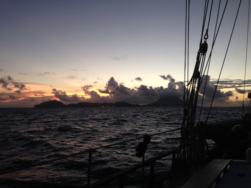 Around noon today, we arrived in Nevis, which marked our first 24 hours of overnight sail aboard Ocean Star. Although most were groggy-eyed during the 3 hours on and 6 hours off watch shifts throughout the voyage, once we moored, everyone brightened up, ate some lunch, went for a swim, and cleaned their bunks. After everyone cooled down, we went right back to work doing something called boat appreciation. In other words, cleaning literally the entire boat. Inside and out. The work wasn’t easy, but seeing Ocean Star sparkle once we finished was definitely rewarding. Afterward, we sat on the deck for an Oceanography lesson from Ivy in which we learned the ins and outs of plate tectonics and chose topics for an upcoming research paper. We just finished dinner, and cleanup is going on as I type. Well, we’ll soon be getting ready to watch Pirates of the Caribbean on deck under the stars to celebrate our arrival in Nevis, so thanks for reading, and make sure to check the blog again tomorrow for another update from the crew!