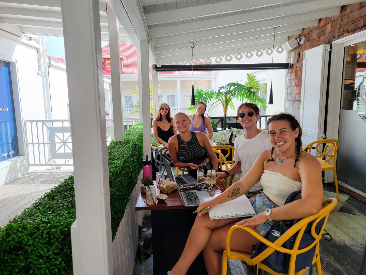 We had sandwiches for lunch after putting the boat to bed, and then it was time for schoolwork. With a bit of negotiation, though, we were granted permission to go ashore and work from a cafe instead of staying on board. A group of us went to a juice bar and coffee shop, so we were able to have mango smoothies and frozen coffee on an adorable second-story patio while we did our work. Others went for ice cream at a small shop just a two-minute walk from where we were docked. We then walked around a bit and shopped in a number of high-end stores, buying everything from jewelry to a new wetsuit, as well as lots of snacks and cold drinks at the market.