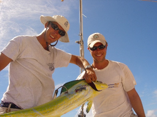 The day began with the shrill ring of a fire drill. Within a minute, the crew was on deck, having donned life jackets and was shaking off the last remnants of sleep and slurping down sausages and hard-boiled eggs. The ship had been prepared for passage, so all that was standing between us and the Caribbean Sea was our two anchors, which we quickly raised and then moved directly into setting our four lower sails. Once underway, we fell off onto a comfortable starboard tack, shut down the engine, and deadreckoned our way north towards Martinique. Halfway through our passage, the fishing rod began to squeal and soon produced a massive Mahi-Mahi, which we landed, cleaned, and stowed in the galley for the evening meal. Not long afterward, the sea began to explode, and suddenly, dolphins were jumping ten feet out of the water as a huge pod passed close on our starboard side. Soon, we were tacking our way into Grande Anse D’Arlet and setting anchor in the beautiful French harbor. The remainder of the afternoon included showering, scheduling our next week, and lighting the grills to prepare for the day’s catch. The evening was capped off with oceanography presentations, and the crew fell asleep quickly after that, bringing another day of our incredible voyage to a close.