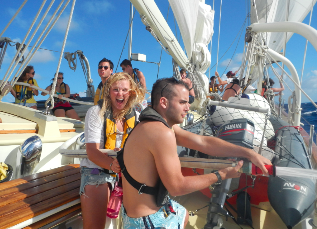 Our day began with the rising of the sun as we pulled up the anchor at 6:45 am. Most were still asleep, but for those on deck, it was quite a sight to be rolling through the waves with the sun coloring the clouds in the background. The trip was short-lived, however, as we anchored again just around the corner and right in time for breakfast. The rest of the morning was then spent on land, exploring the town. But we got back in the early afternoon so that we could prep for our second inter-island sail. We were soon off on the three-hour journey to Dominica, which we arrived at just in time to watch the sunset, a rightful end to a similarly started day and a great way to begin our time on a new island.