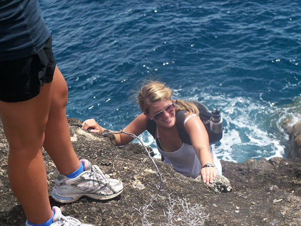We started off the morning bright and early for a breakfast of champions of French Toast with fresh fruit. The people with Open Water diving certification loaded up and headed out for a dive before 8:30. We spent roughly a half-hour underwater and got to see a lobster and lots of fish! We were still relaxing in Nelson’s Dockyard, so we found our land legs again and went ashore searching for seafood, internet, and smoothies. I’m pretty sure everyone found just what they were looking for throughout town and especially enjoyed our shore lunch. Some of us participated in an optional hike to the Gates of Hercules and Shirley Heights. It was far less intense than our previous hike on Nevis, which I’m still convinced was really mountain climbing. We got to see tide pools, wild goats, and different ‘century plants’ in various stages of bloom. There were several lookout points where we could enjoy uninterrupted views of the whole island or miles of open ocean with crystal visibility. After the hike, we all met back on Ocean Star for a fantastic dinner of pasta and salad, during which we enjoyed watching dolphins play by the boat. The Advanced Water divers headed out for a night dive as soon as clean-up was done, while the Open Water divers watched our final videos for certification. We set sail tomorrow morning for St. Barts, and we are all looking forward to starting a passage in the day!