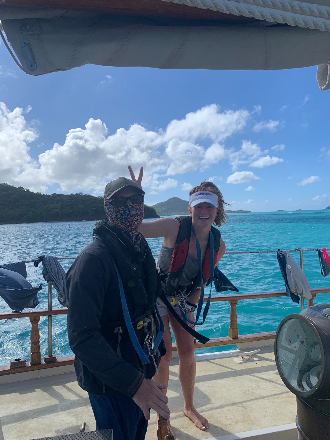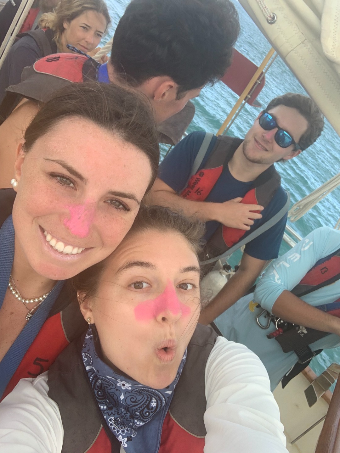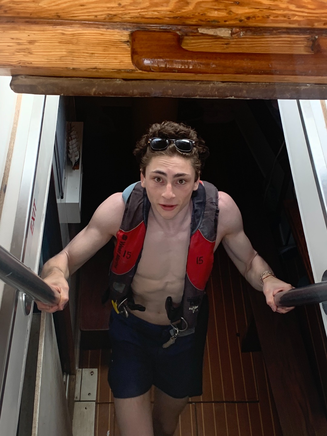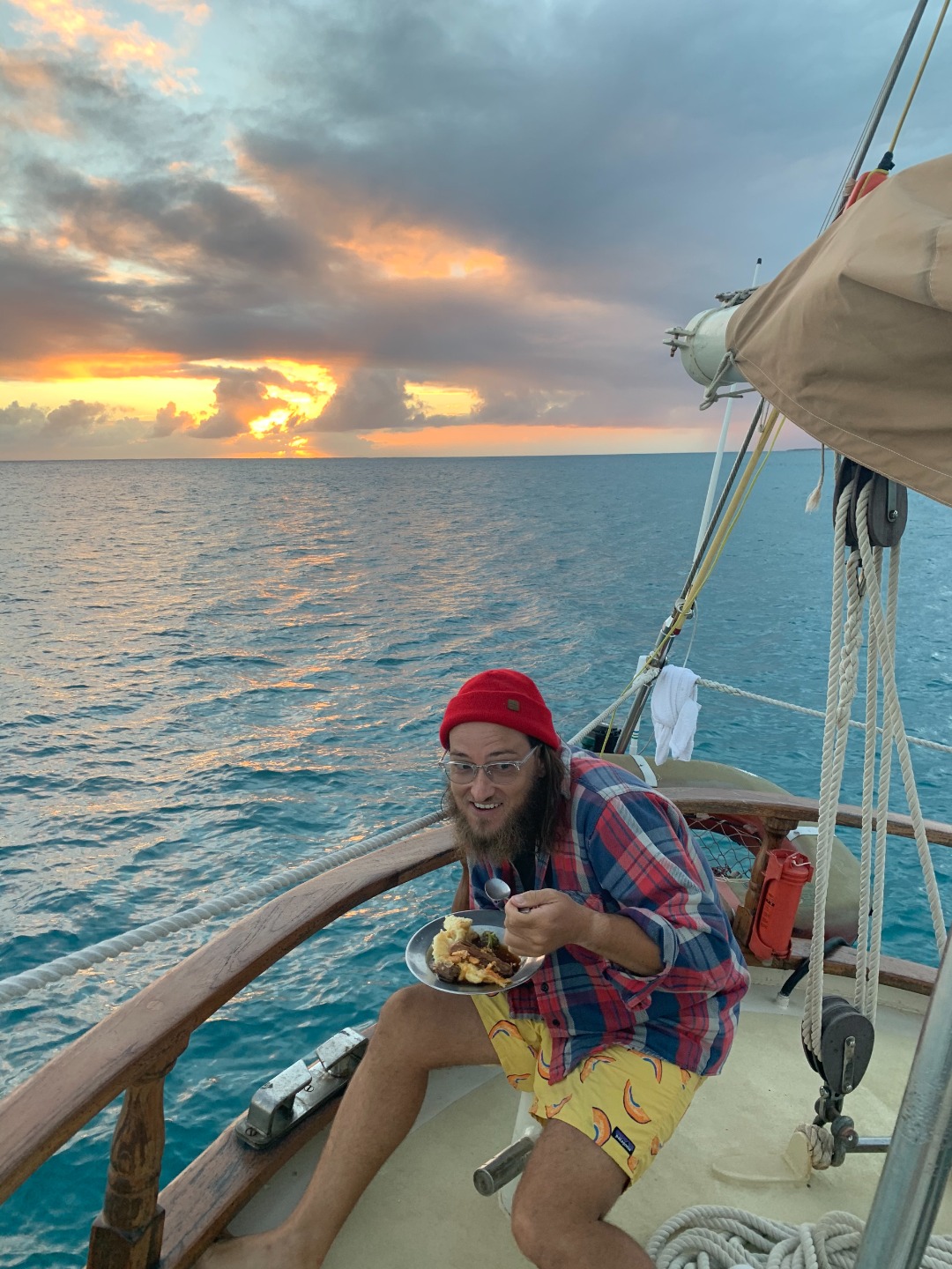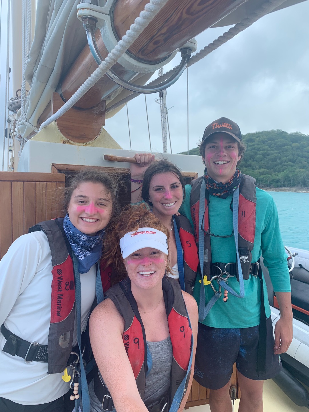 They say that Special K is the breakfast of champions, but we’re convinced it’s actually Marshmallow Mateys. Think Lucky Charms, but very off-brand. Keaton is convinced that we see rainbows when we eat them, and today we saw two! I think it was a good omen for our bio test, but we’ll see when the grades come back. Steve did not hold back on the questions about phytoplankton. After the test, we sailed away from our anchor spot so that we can get our Covid tests tomorrow in Antigua. Celia loaned us some of her pink zinc, so we felt like real sailors, and we managed a pretty seamless sail besides Henry’s lost hat. Maybe it will reunite with Julien’s airpod that also went overboard. After a great pasta lunch from Ash, Brahm taught us some knots that we then tied to every available surface of the boat. At this point, I think I’m going to be tying clove hitches in my sleep. No diving today, but a fun afternoon of swimming and throwing a deflated football we found. Grady also figured out how to work the surround sound speakers in the salon, much to Steve’s chagrin. Don’t Stop Believing can get pretty loud on those things. Dinner was Toad in the Hole, a Steve specialty, and although some of us (me particularly) were skeptical, it turned out to be a big hit. Gearing up for a movie night and, hopefully, some chocolate chip cookies, followed by my 1-2 am anchor watch. We’re all getting excited for our first passage to St. Vincent and the first day of student head chef tomorrow! Liam, we’re all rooting for you. Goodnight from Antigua, and miss you all at home!